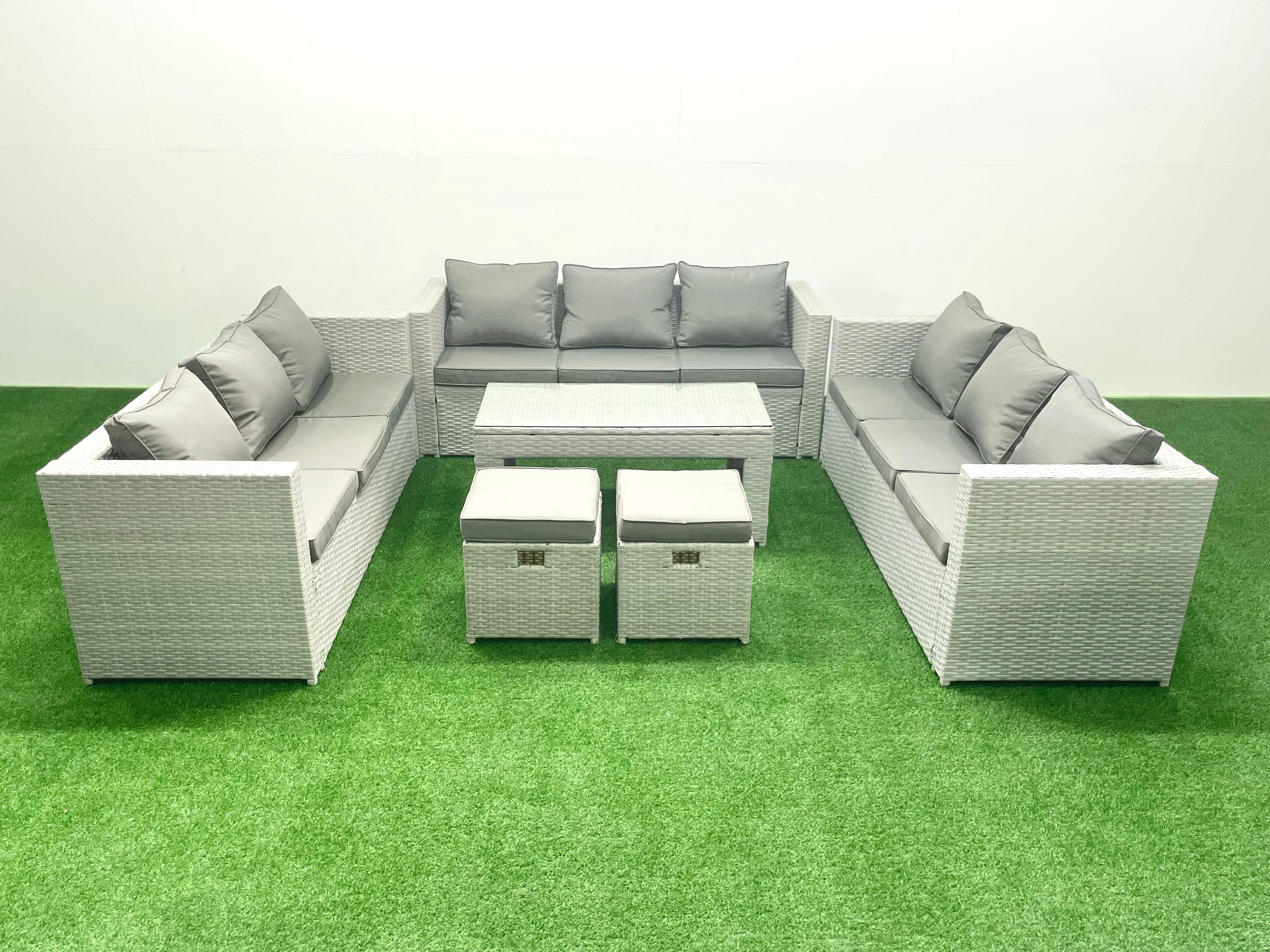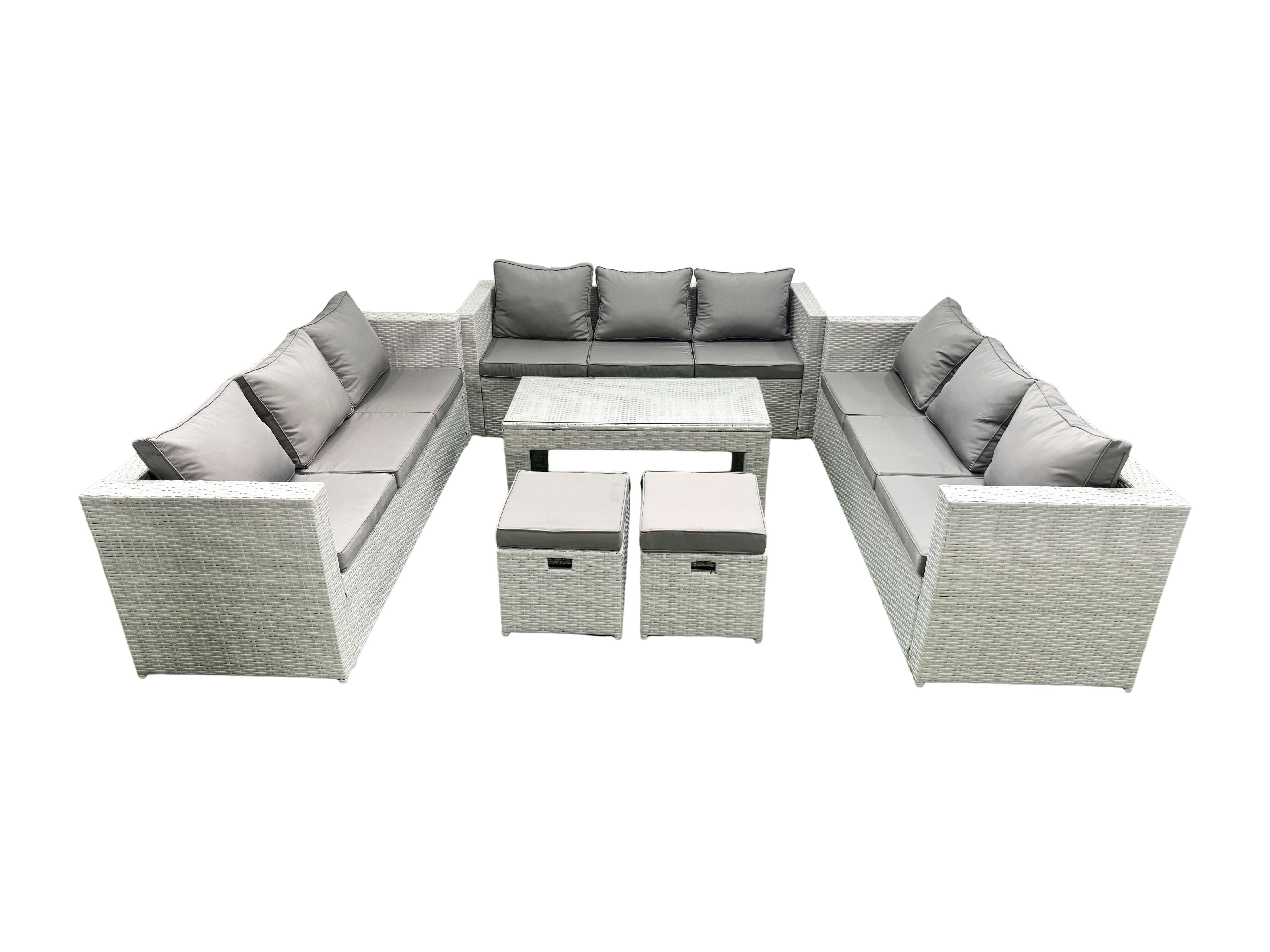 Ensemble de meubles d'extérieur en rotin 11 places avec Table basse oblongue 2 Petits tabourets Gris clair mixte