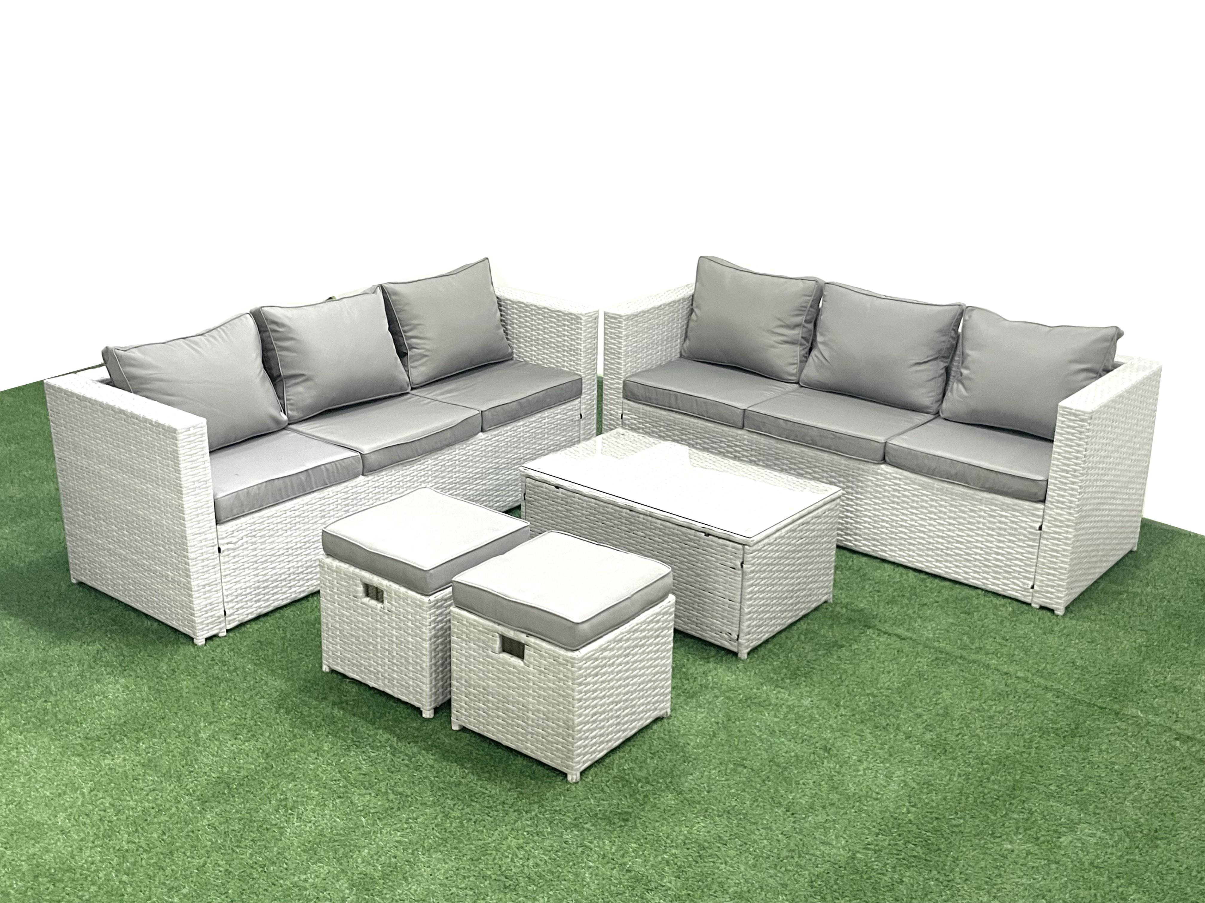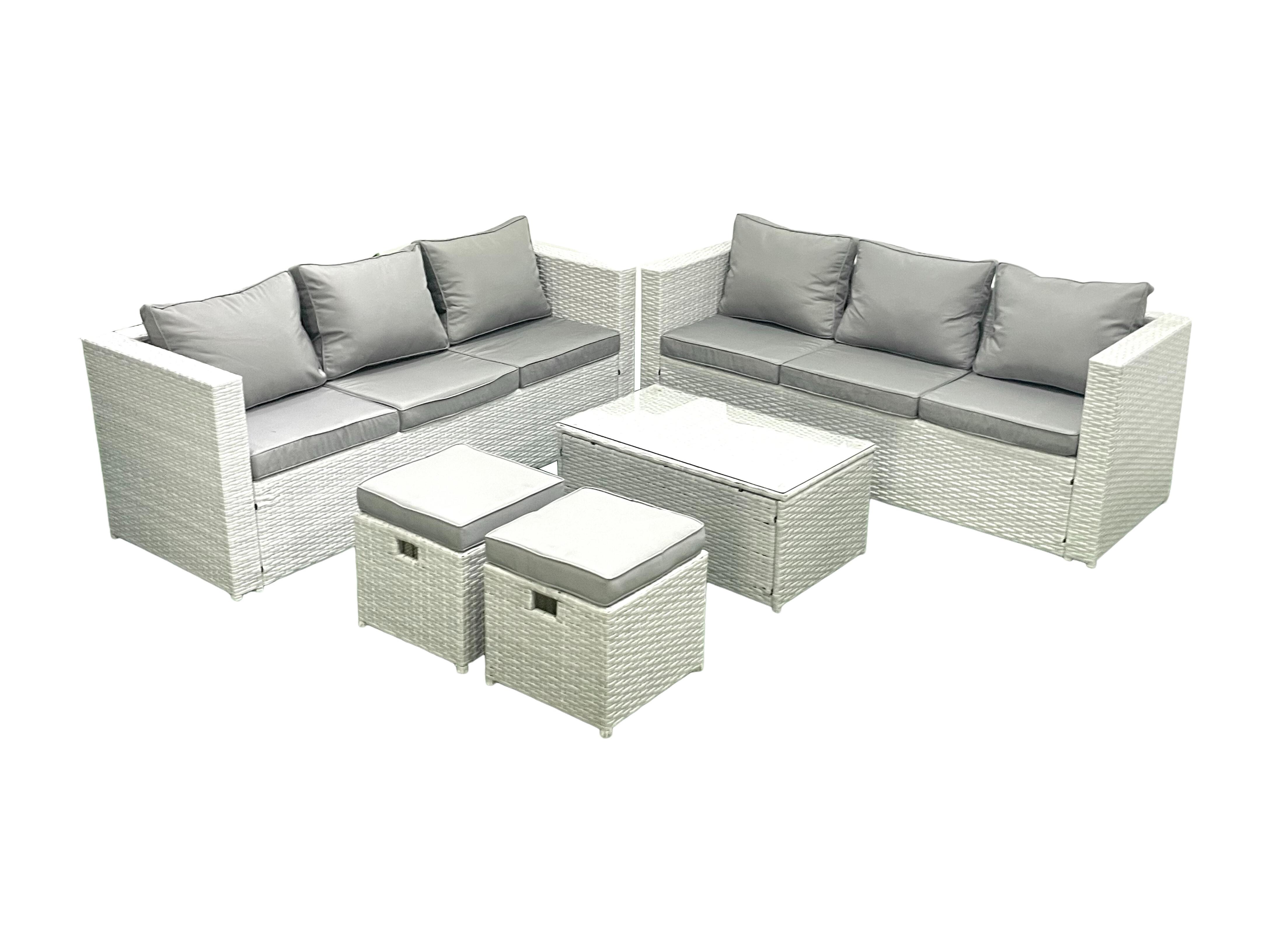 Ensemble de meubles d'extérieur en rotin 8 places avec 2 Petits tabourets Gris clair mixte