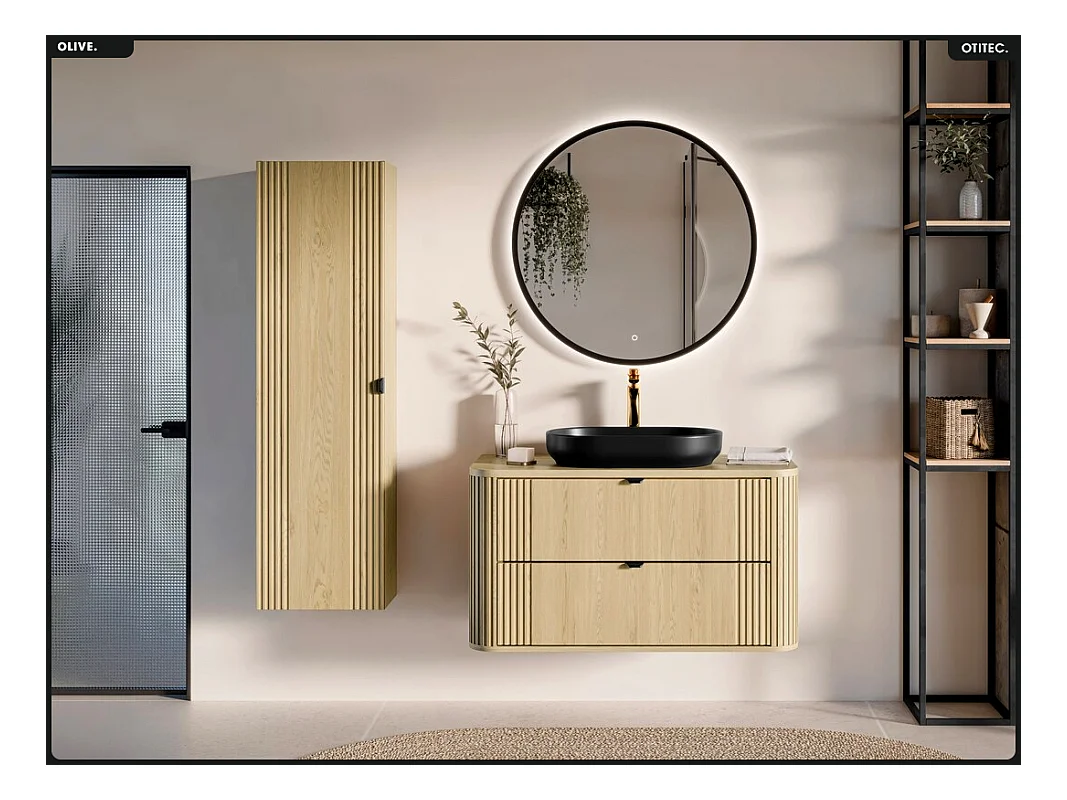 Ensemble de meubles sous vasque - 100 cm - avec Plan - OLIVE - Chêne