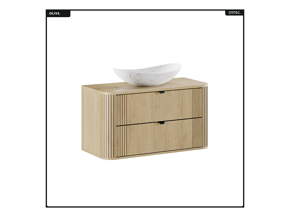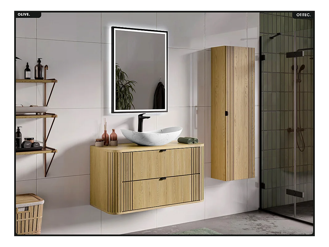 Ensemble de meubles sous vasque - 100 cm - avec Plan - Vasque - OLIVE - Chêne