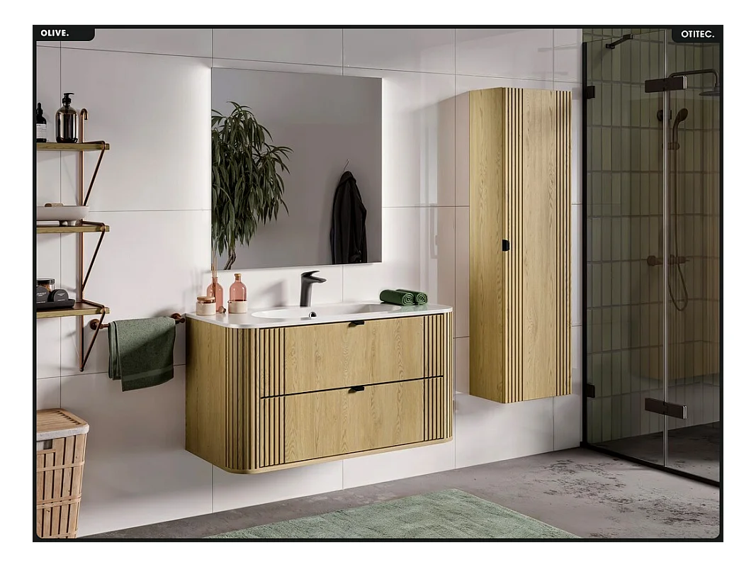 Ensemble de meubles sous vasque - 100 cm - avec Vasque - OLIVE - Chêne