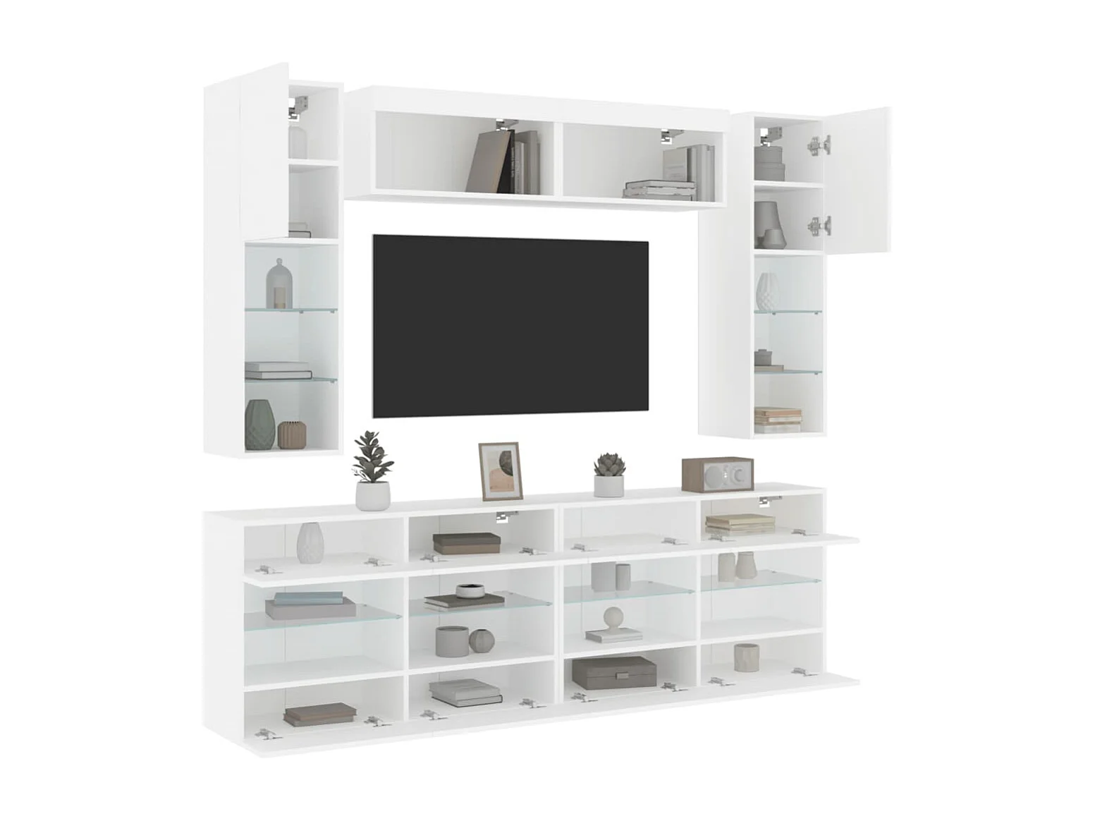 Ensemble de meubles TV muraux 6 pièces avec lumières LED blanc