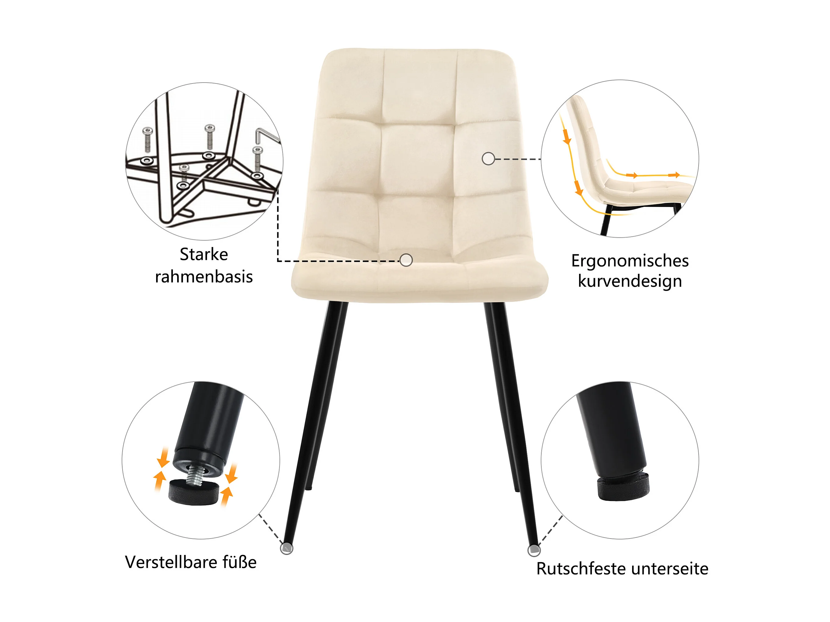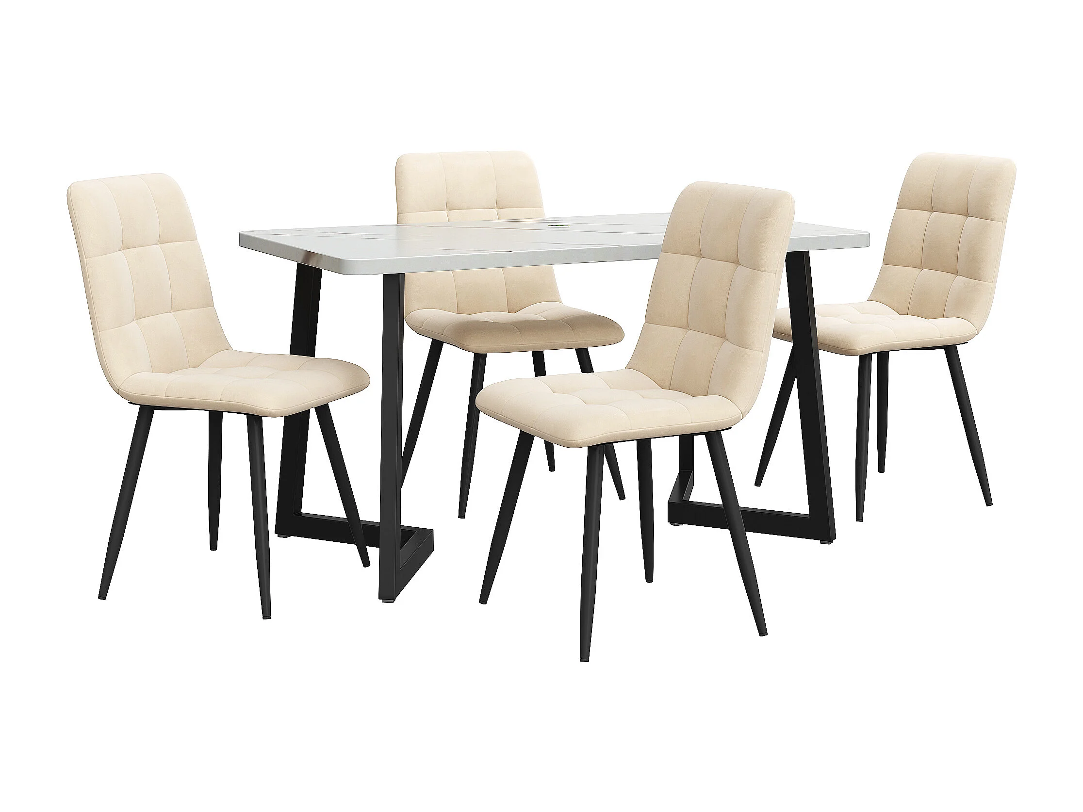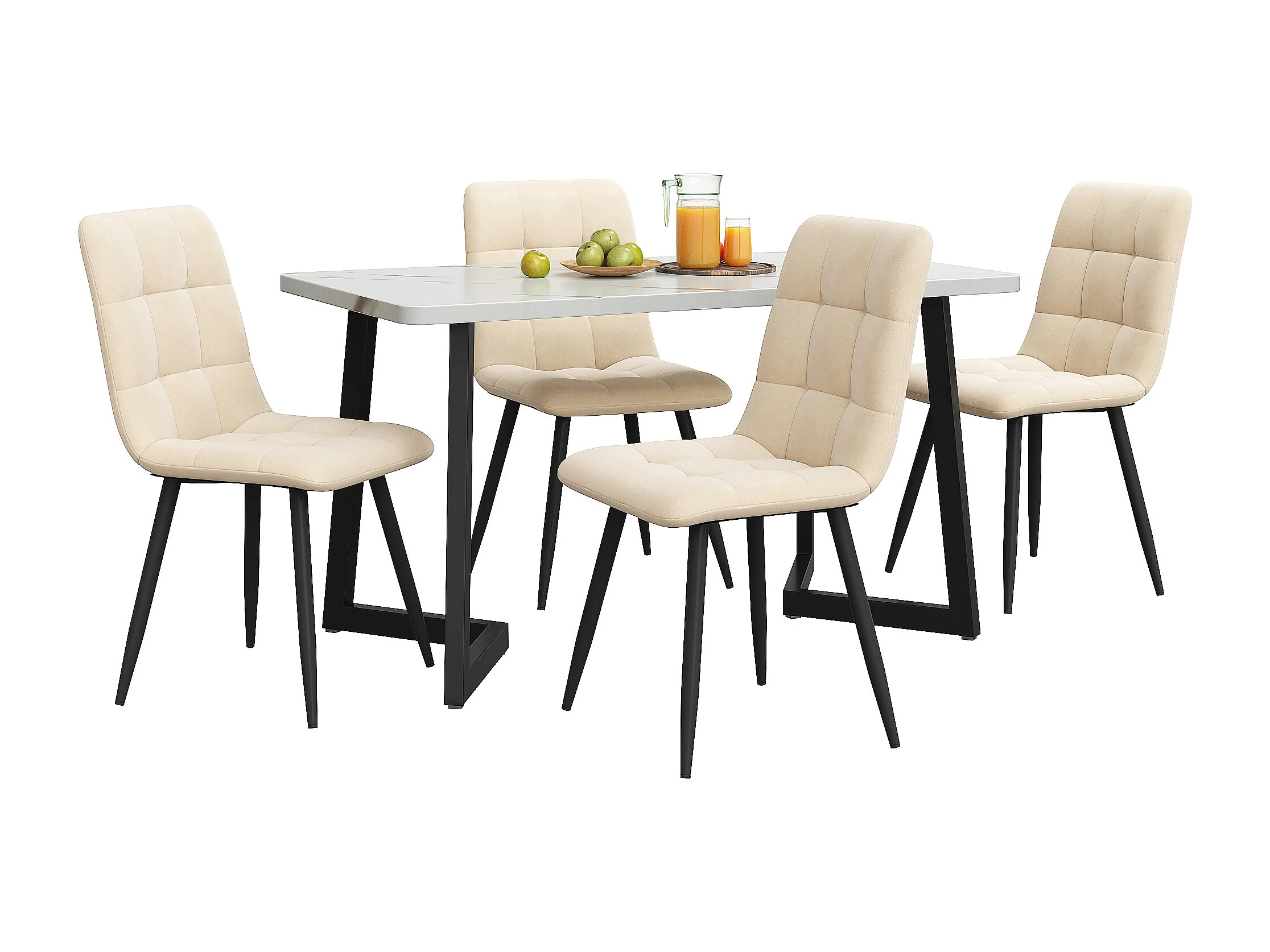 ensemble de salle à manger (5 pièces), Table Rectangulaire 117x68 cm avec 4 Chaises en Velours Beige, Pieds Métalliques Noirs
