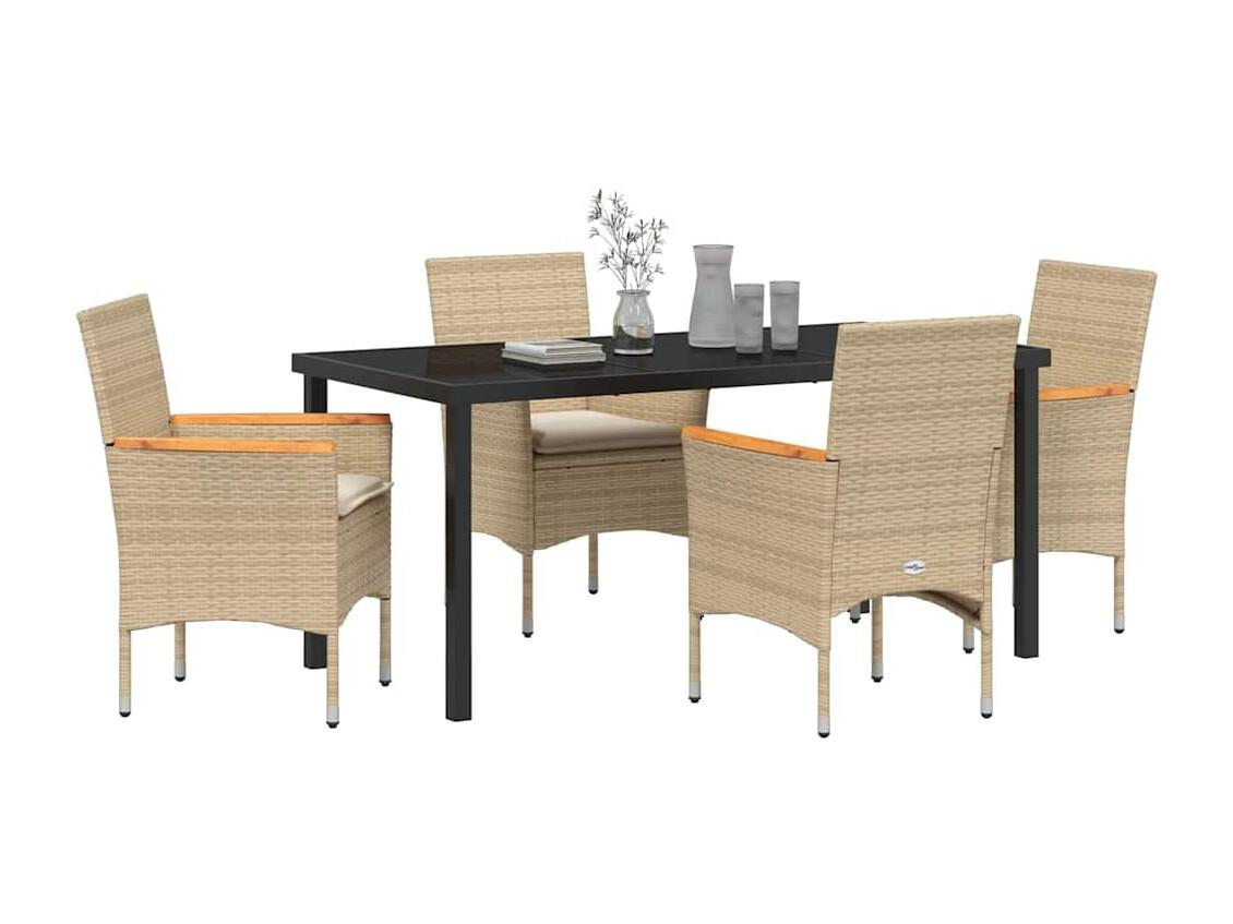 Ensemble de salle à manger pour jardin 5 pcs Beige Poly rotin