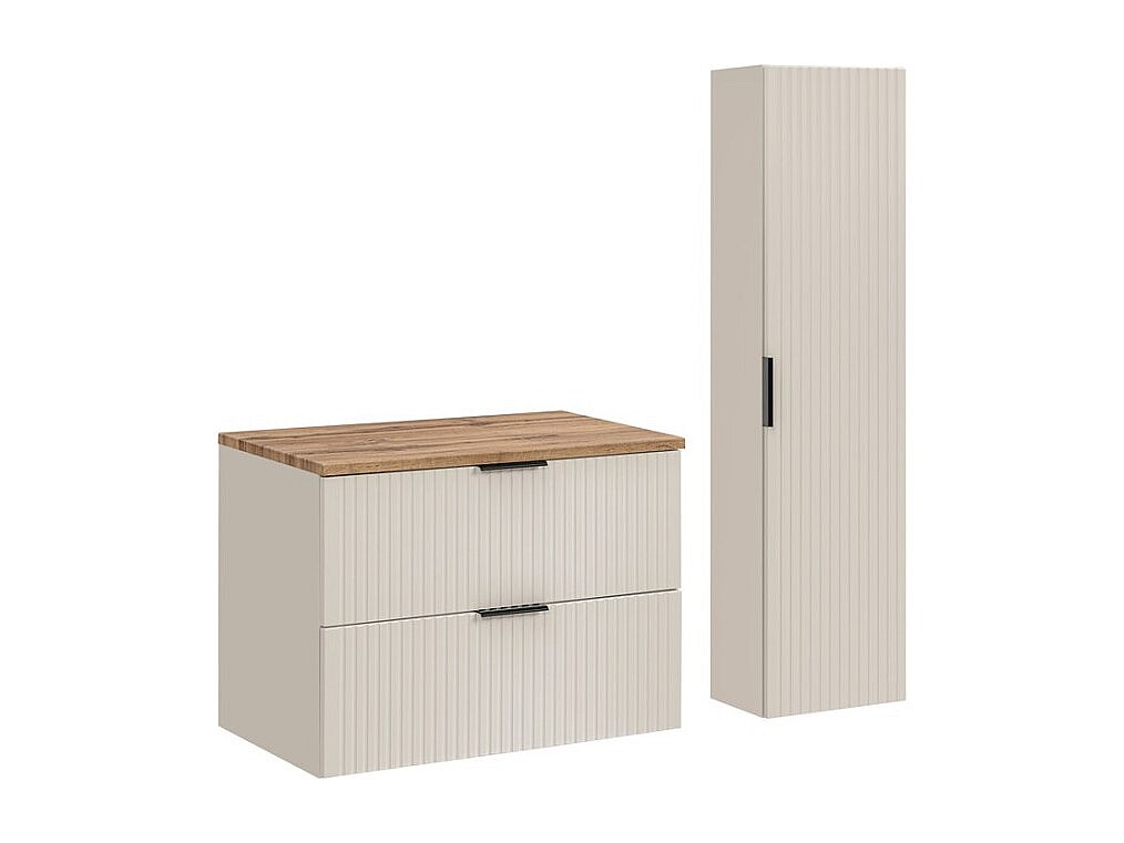 Ensemble de salle de bains NOXERA 80 cm – Marron congo & chêne Wotan – Meuble + colonne