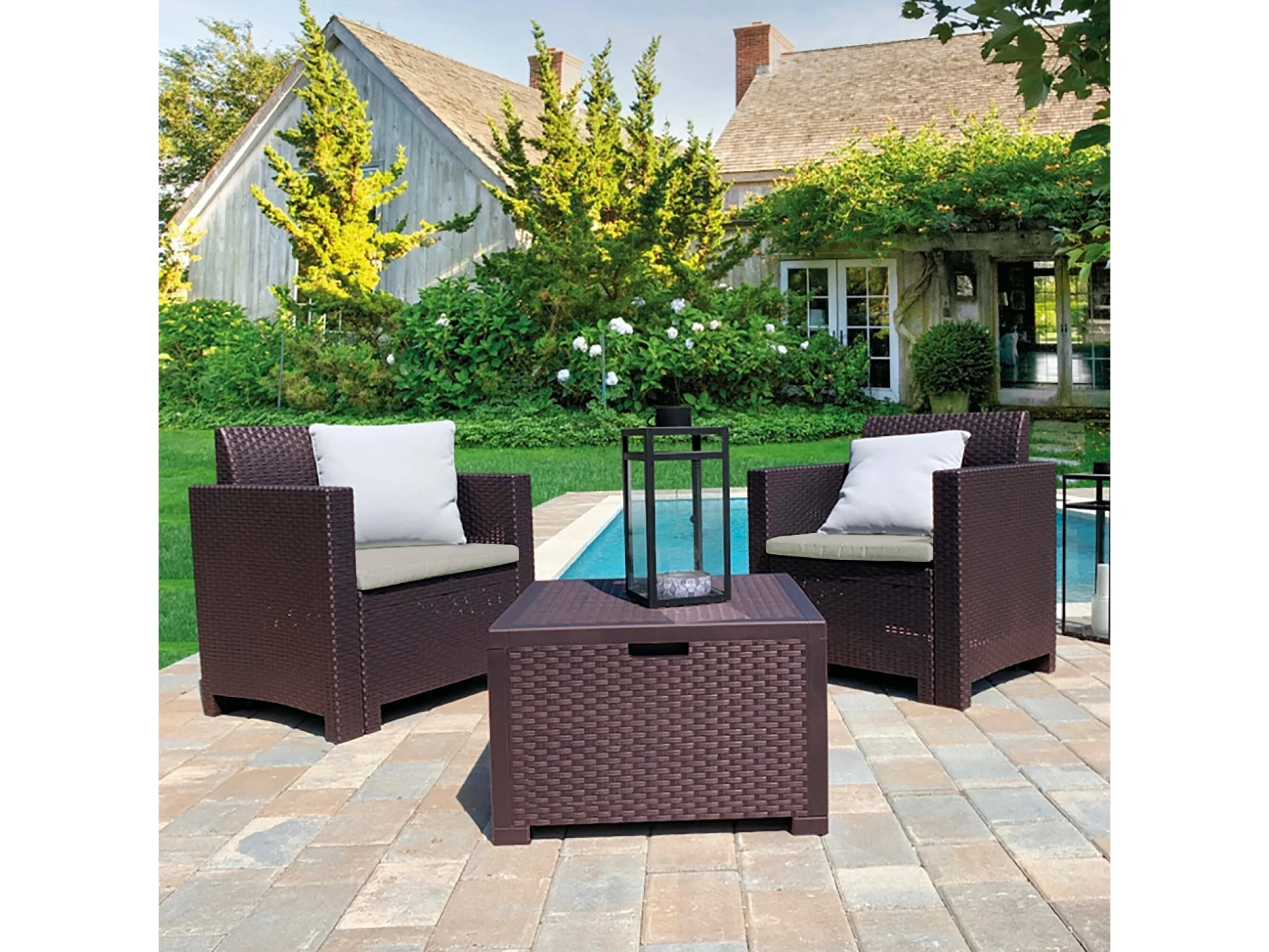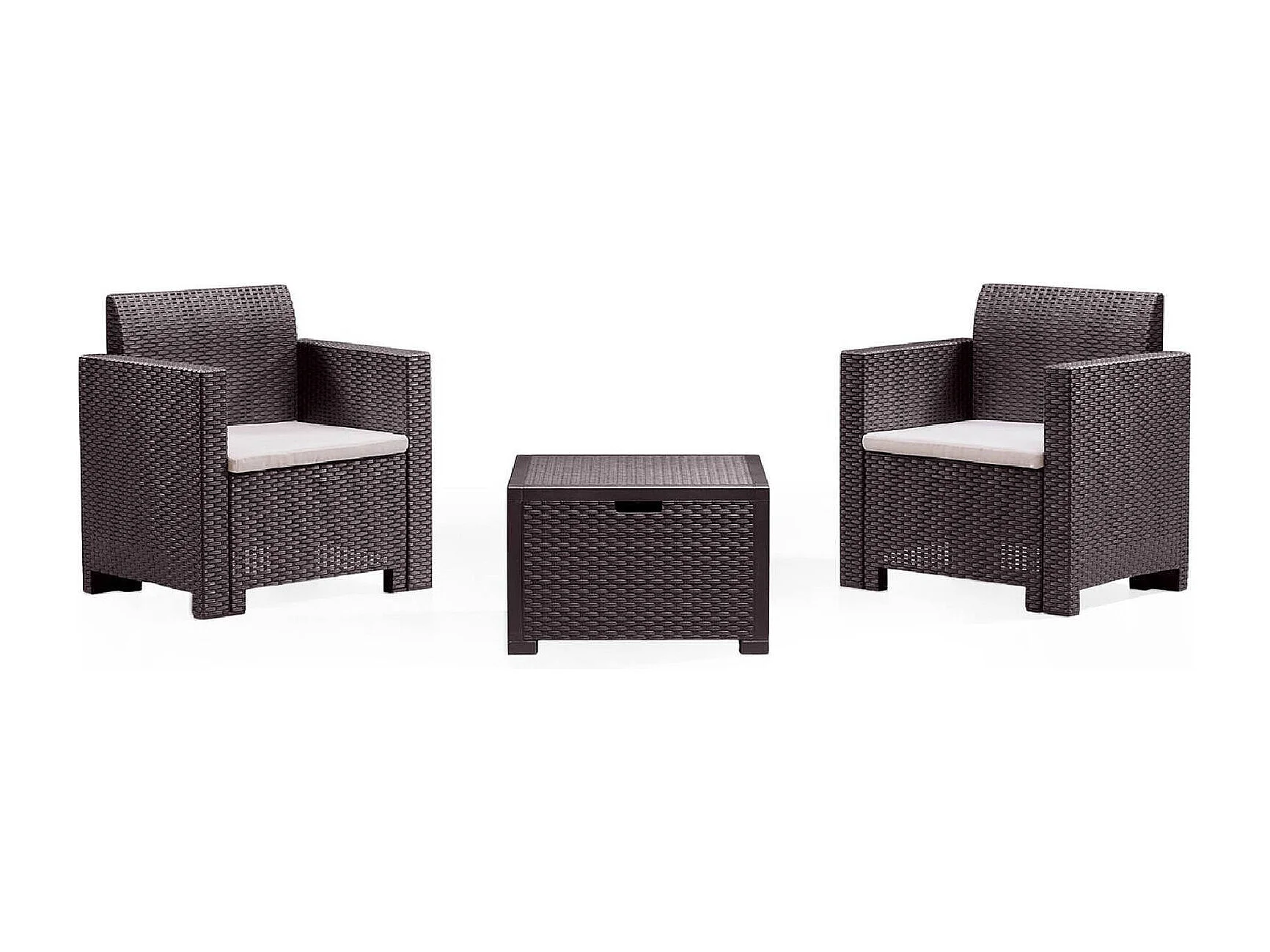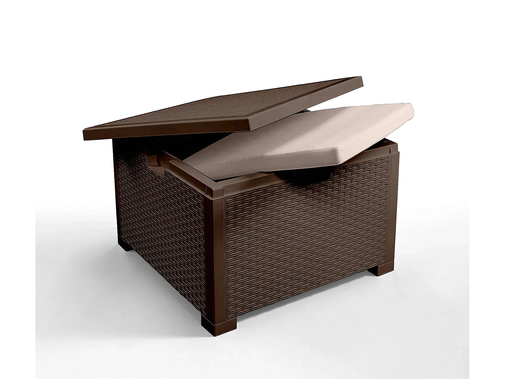 Ensemble de salon d'extérieur Dkrajn, Ensemble de jardin avec coussins, Ensemble de salon d'intérieur effet rotin, 100% Made in Italy, Marron