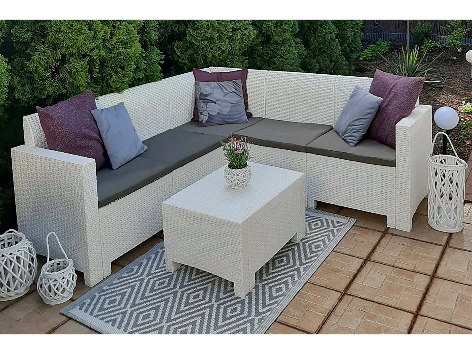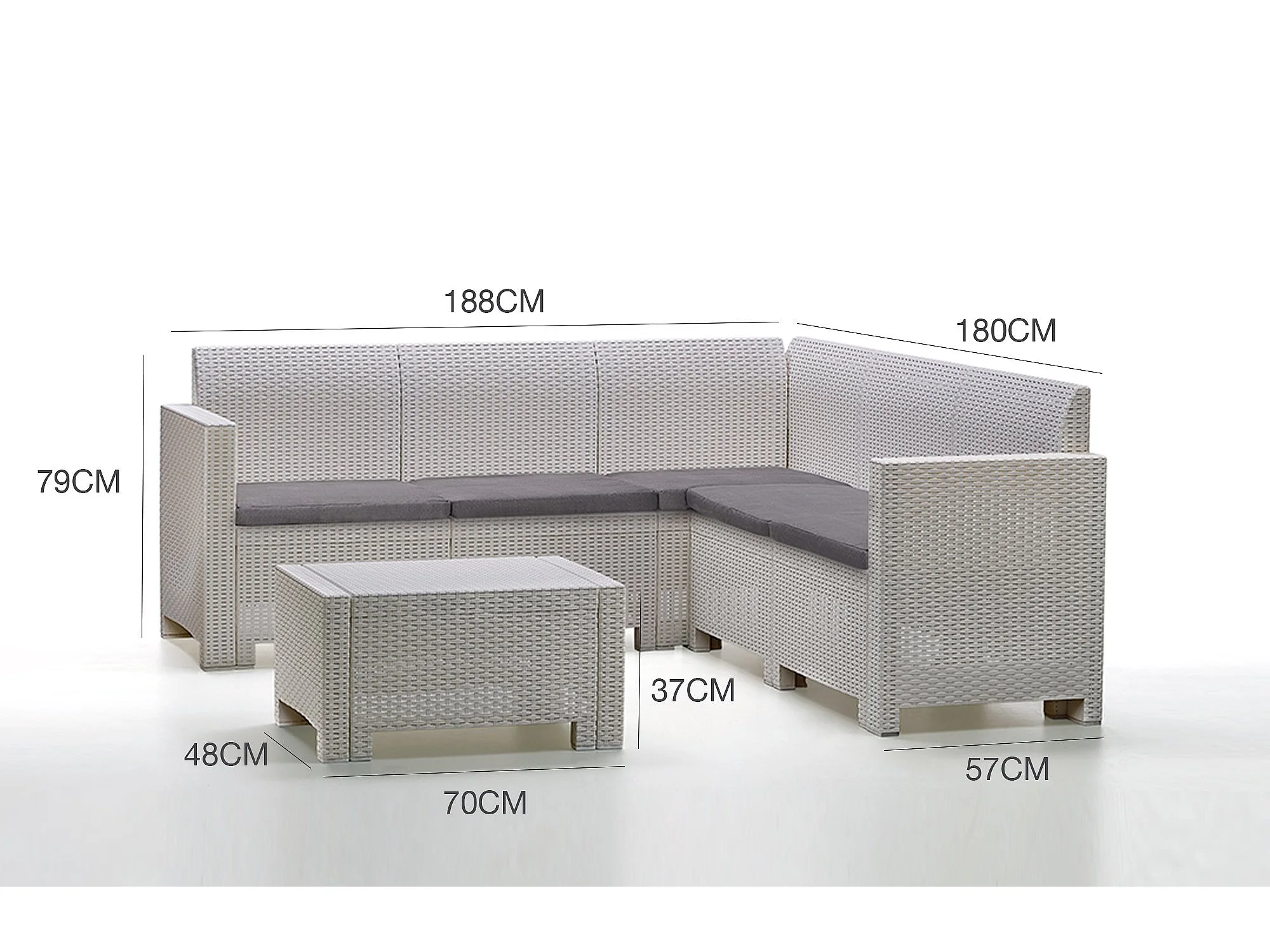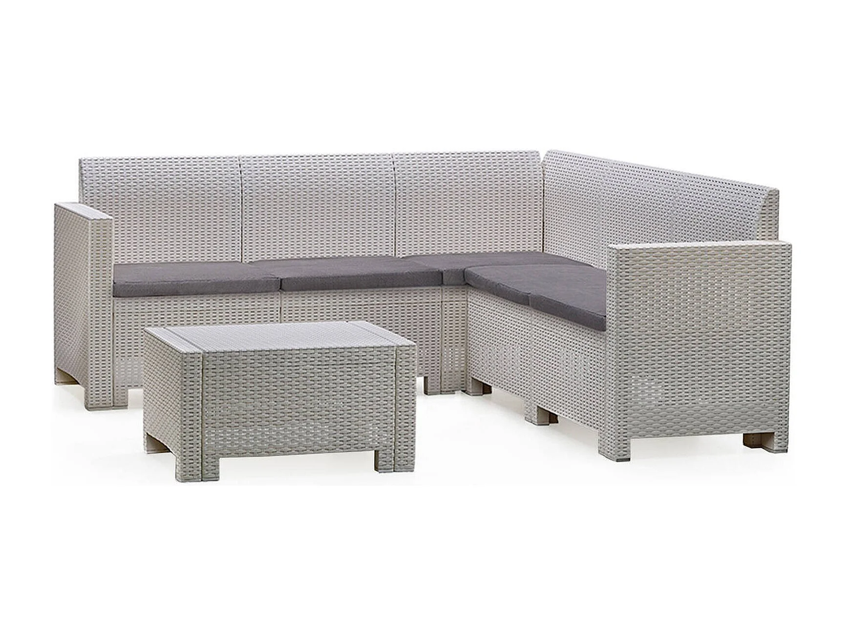 Ensemble de salon d'extérieur Dcorre, Ensemble de jardin avec coussins, Ensemble de salon d'intérieur effet rotin, 100% Made in Italy, Blanc
