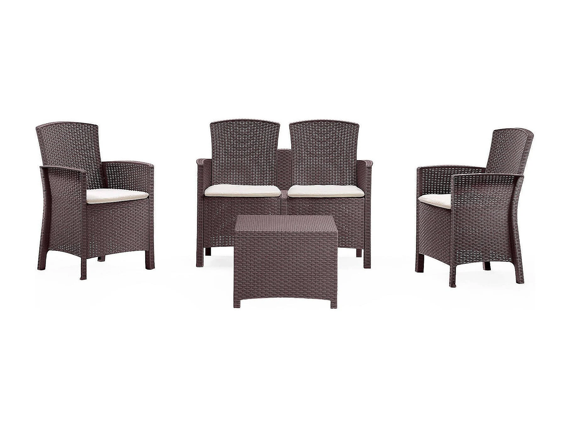 Ensemble de salon d'extérieur Dmorat, Salon de jardin avec coussins, Salon d'intérieur effet rotin, 100% Made in Italy, Marron