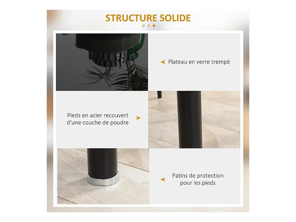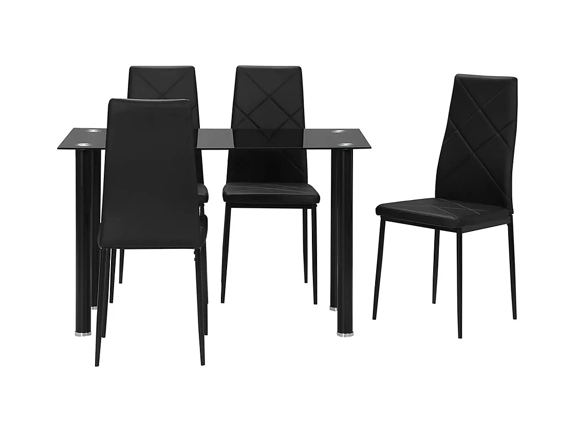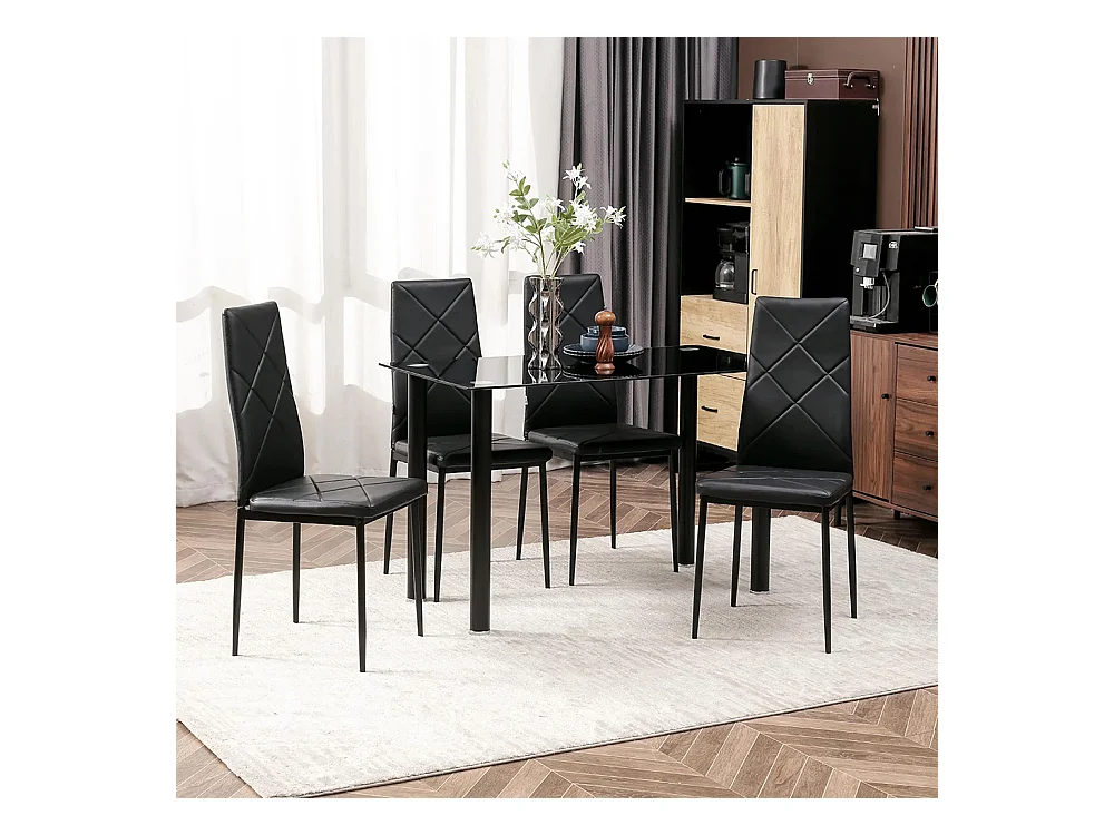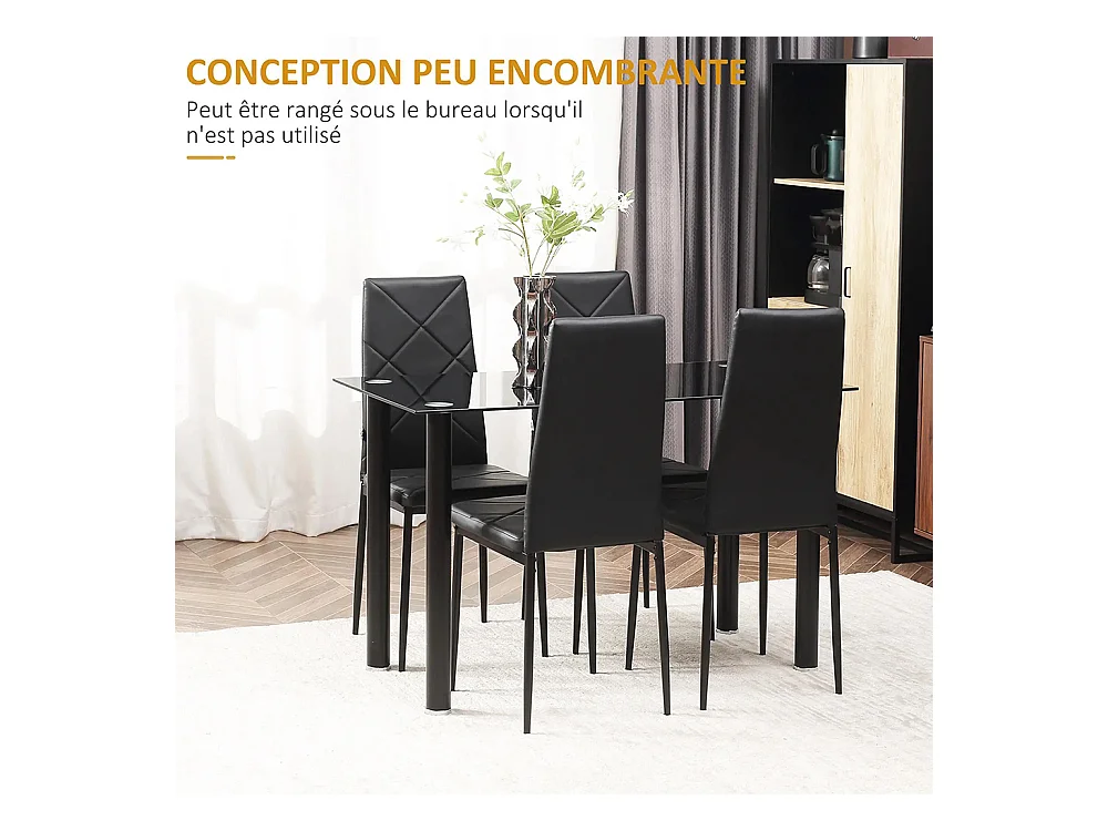 Ensemble de table à manger avec 4 chaises plateau en verre trempé, pieds en acier, pour cuisine salon noir