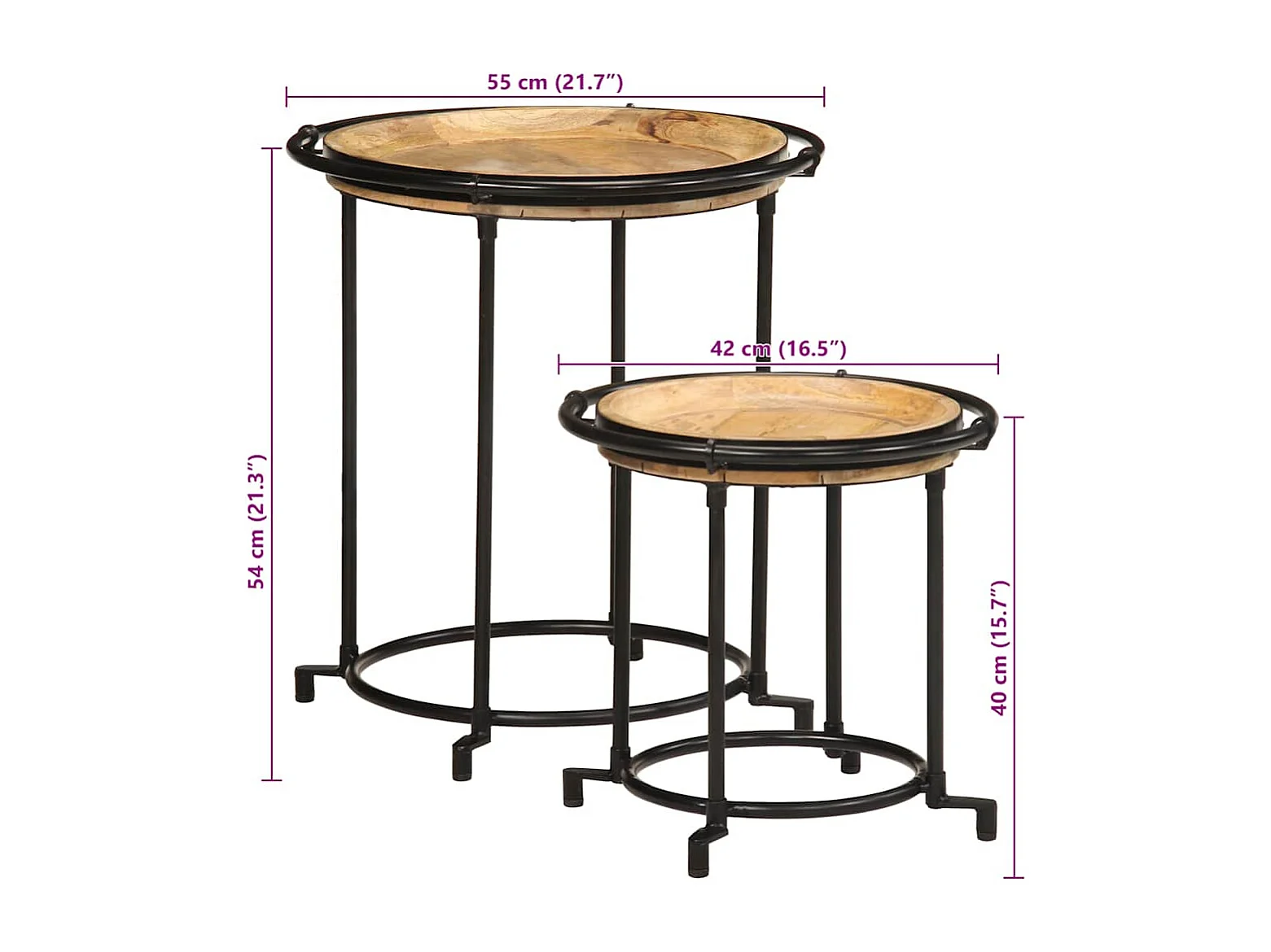 Tables gigognes 2 pièces Bois de manguier brut