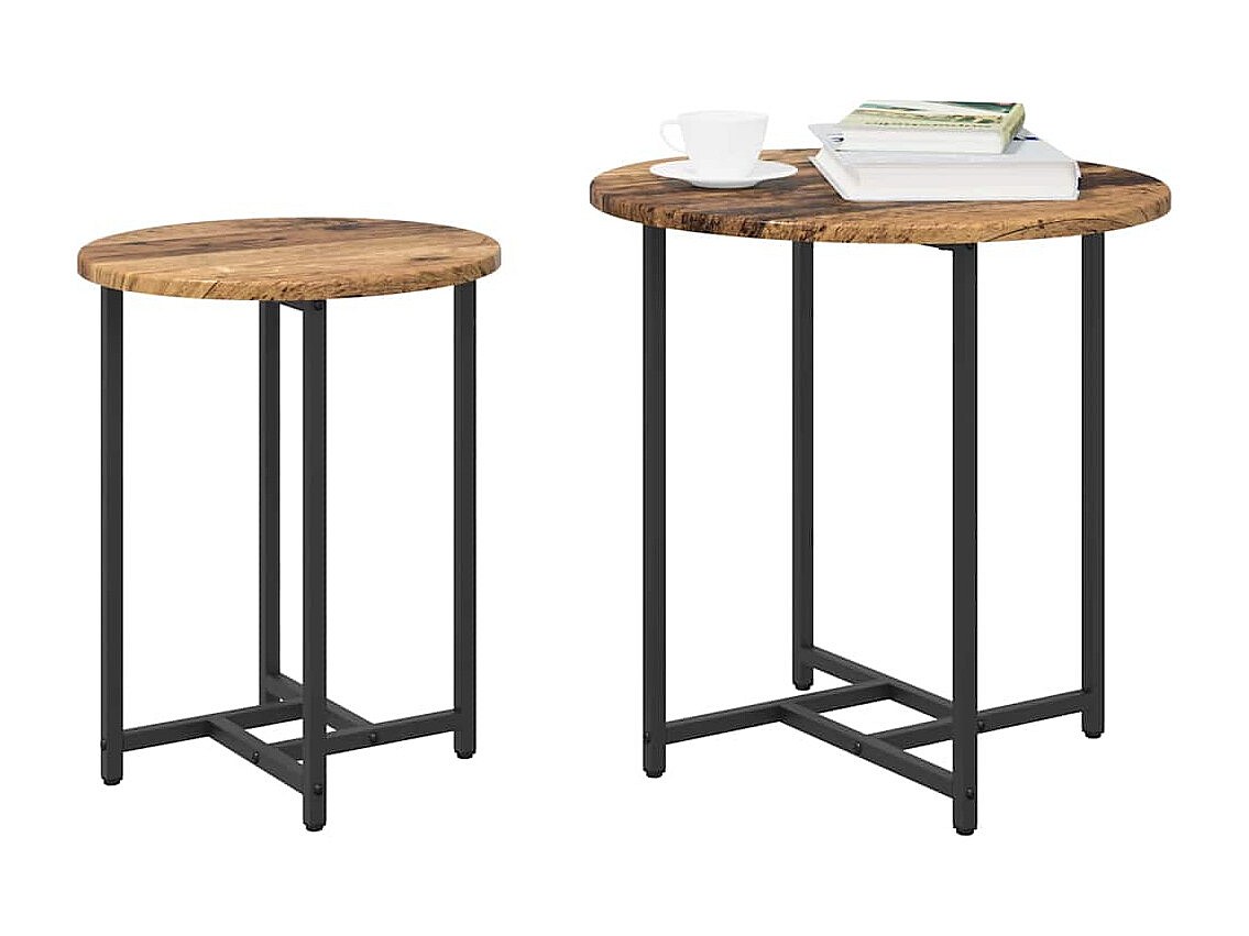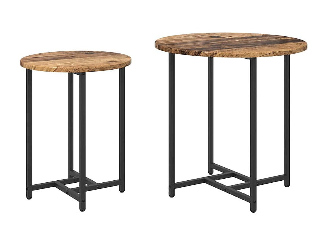 Ensemble de tables d'appoint 2 pièces Bois ancien et noir