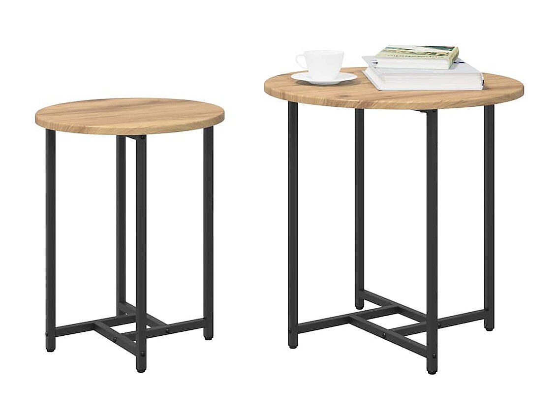 Ensemble de tables d'appoint 2 pièces Chêne artisanal et noir