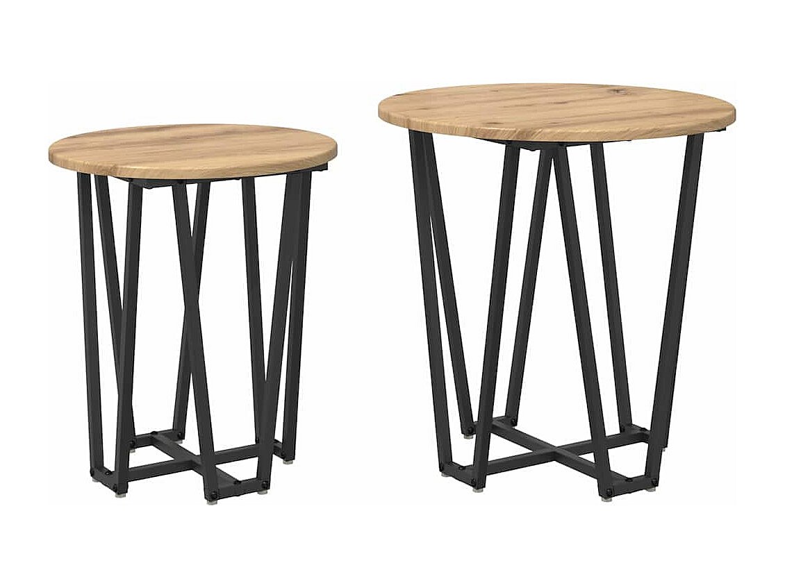 Ensemble de tables d'appoint 2 pièces Chêne artisanal et noir
