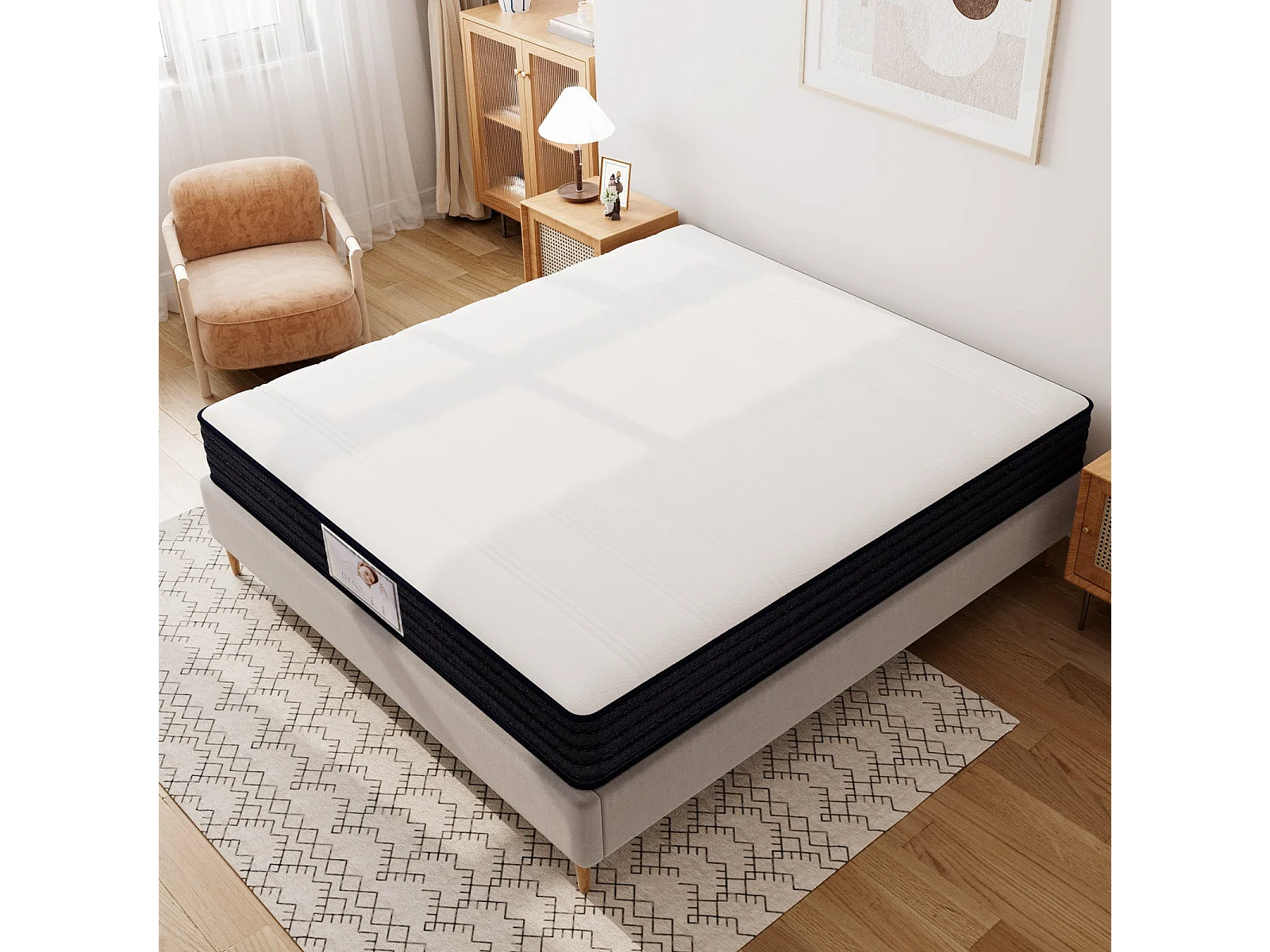 Ensemble Matelas à ressorts + Cadre de lit Plateforme Capitonné 140x190cm, Epaisseur du Matelas 22cm