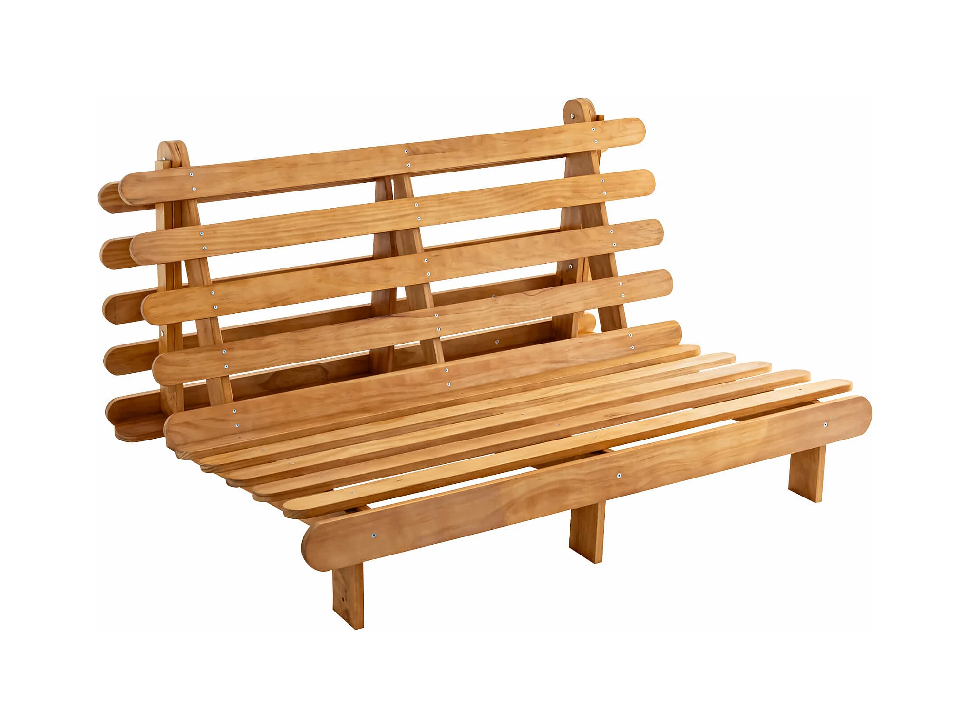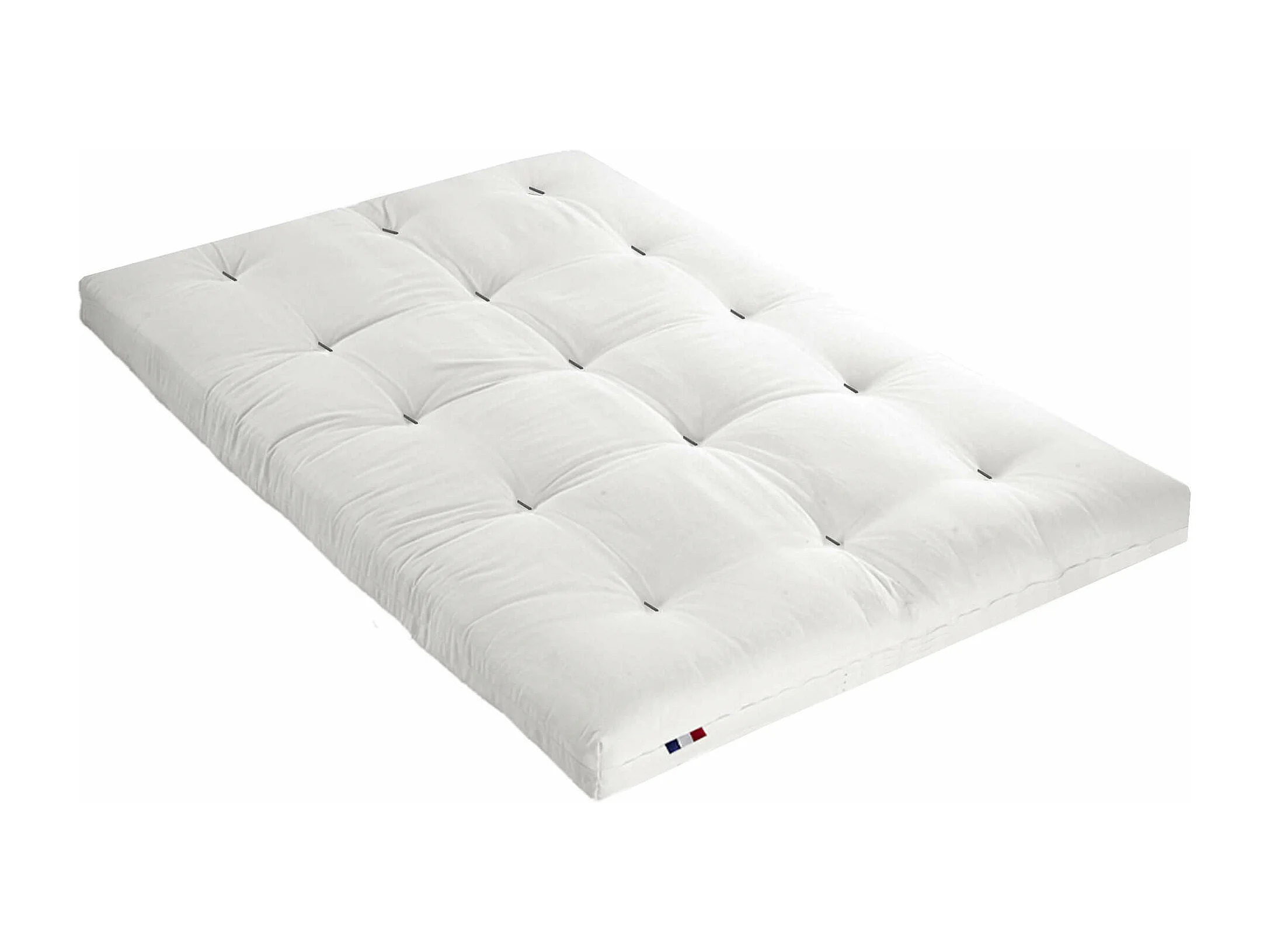 Ensemble matelas futon en coton et structure en bois massif naturel 140x200 Ecru