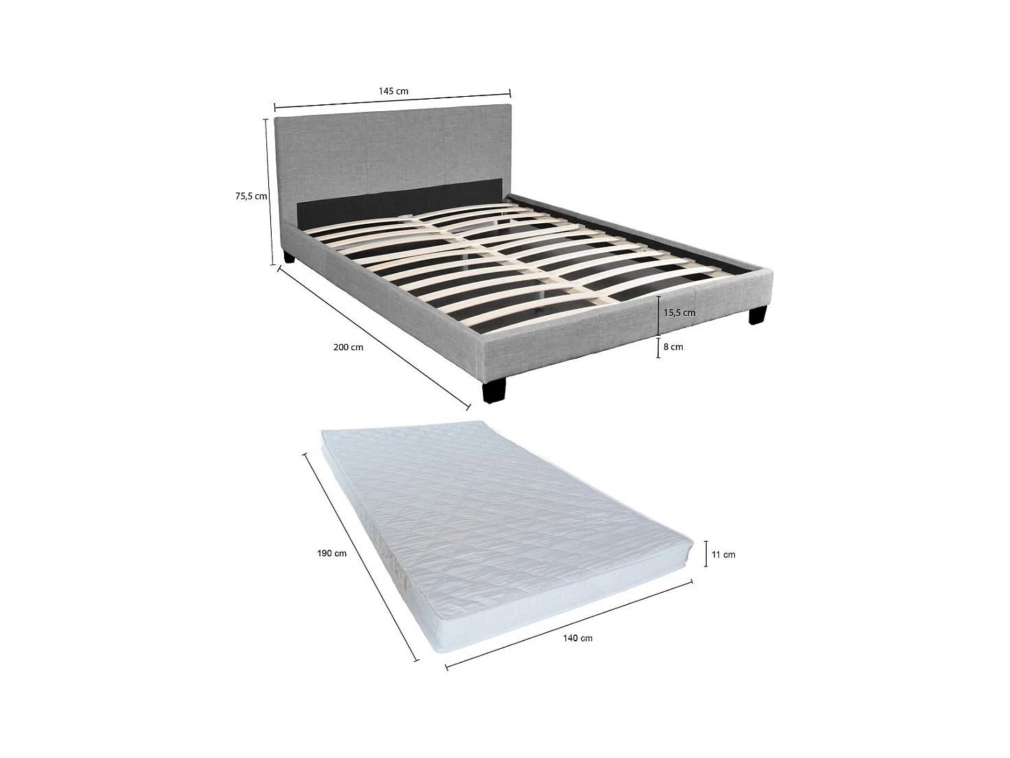 Ensemble Matelas + Lit 140x190 DUBLIN / Gris clair