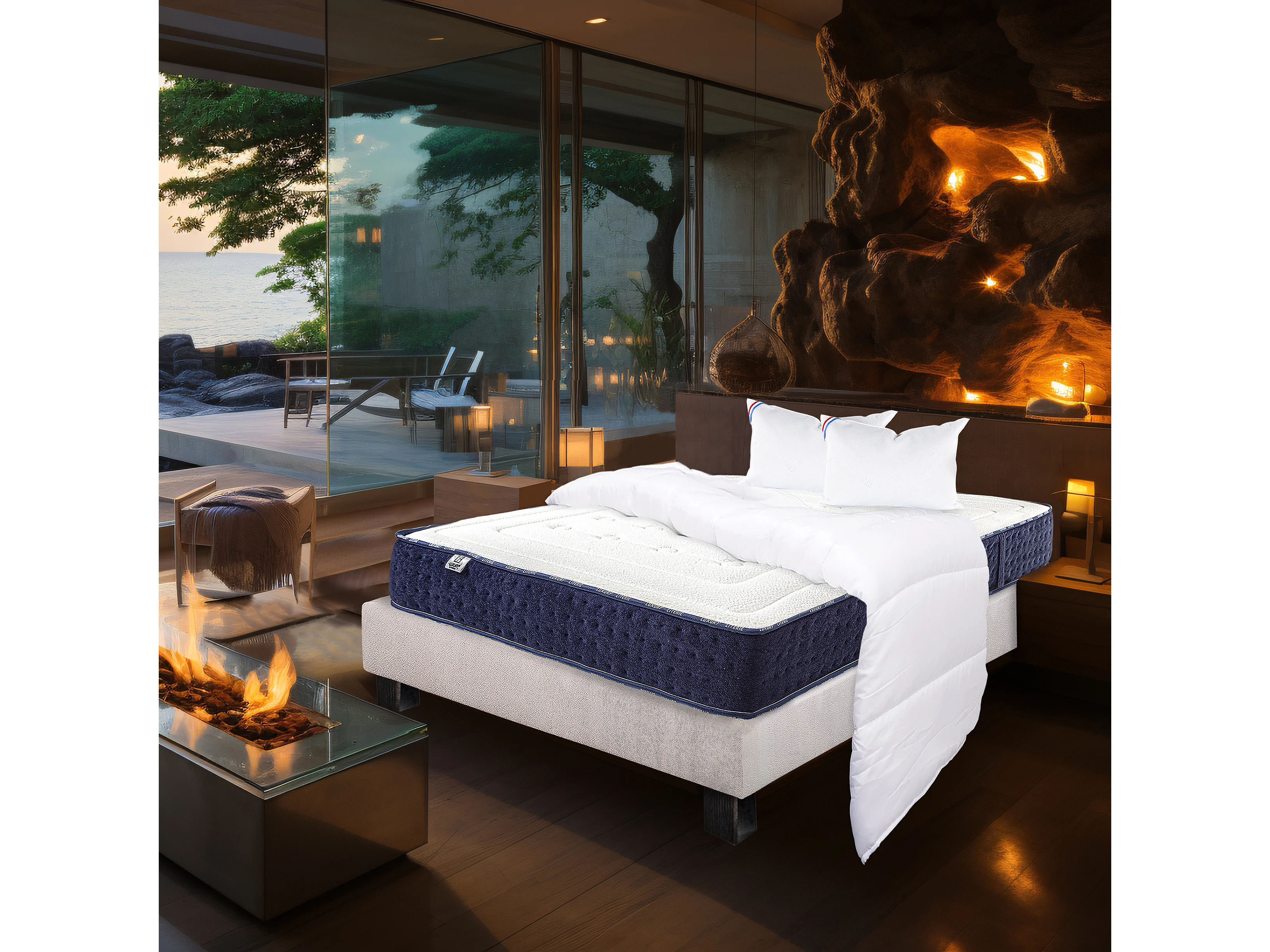 Ensemble Matelas 140x200 cm, Nuage, 24 cm + sommier gris + 2 oreillers + couette