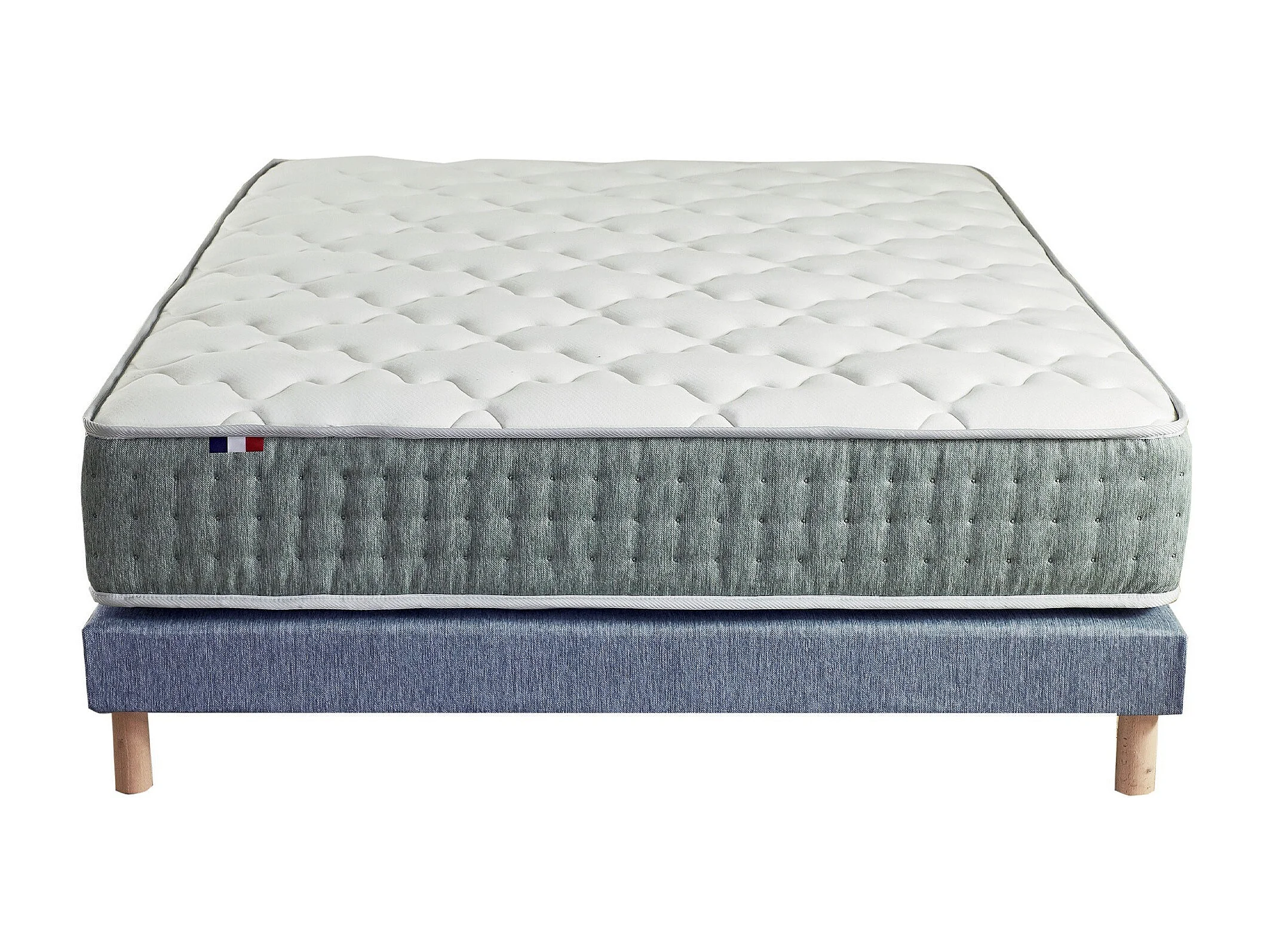 Ensemble + matelas Ressort 7 zones Face Hiver/Eté différente HYGGE Fabriqué en France Dimensions - 160 x 200 cm, Sommier - Bleu denim