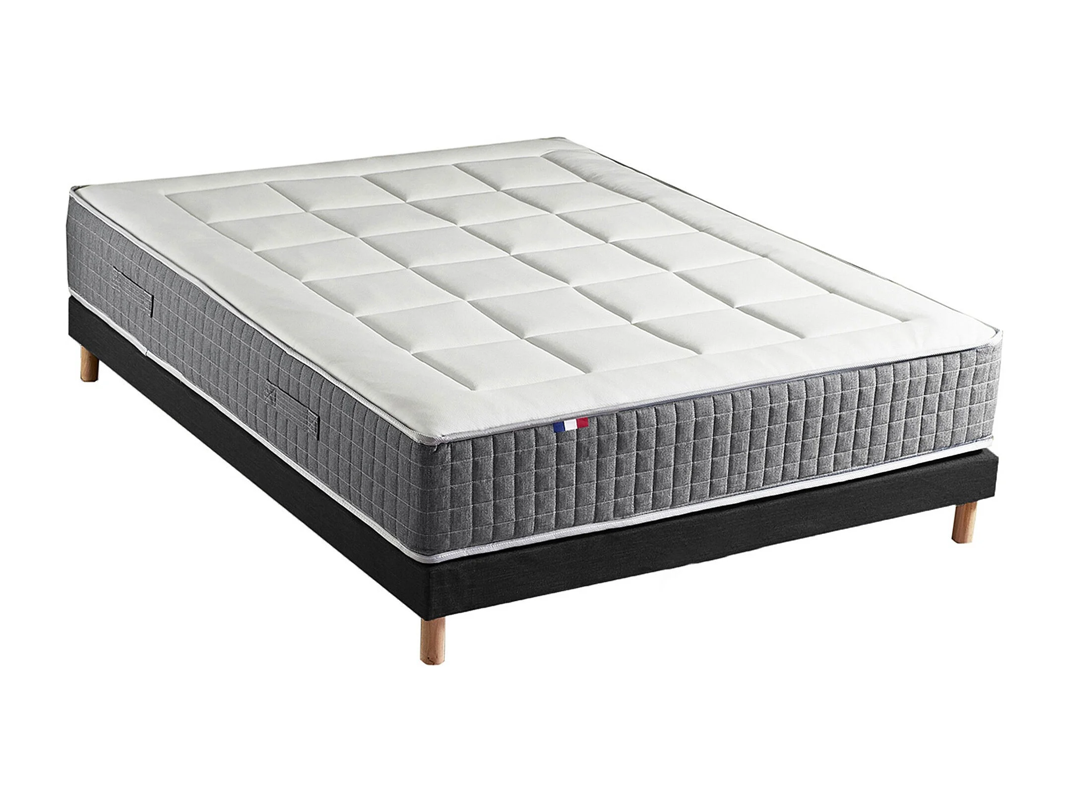 Ensemble Matelas Ressort 7 zones H.28cm + Sommier Fabriqué en France MAX Dimensions - 160 x 200 cm, Sommier - Noir