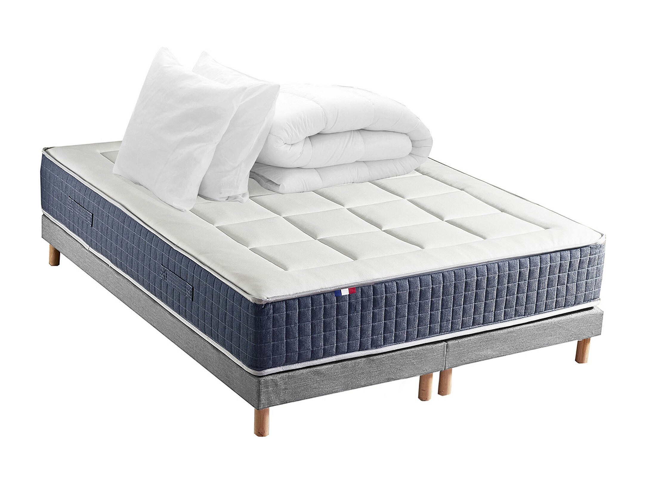 Ensemble matelas ressort 7 zones KING STYLE, mémoire de forme, sommier, couette, oreillers Dimensions - 2x90 x 200 cm, Sommier - Gris chiné