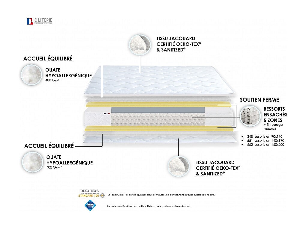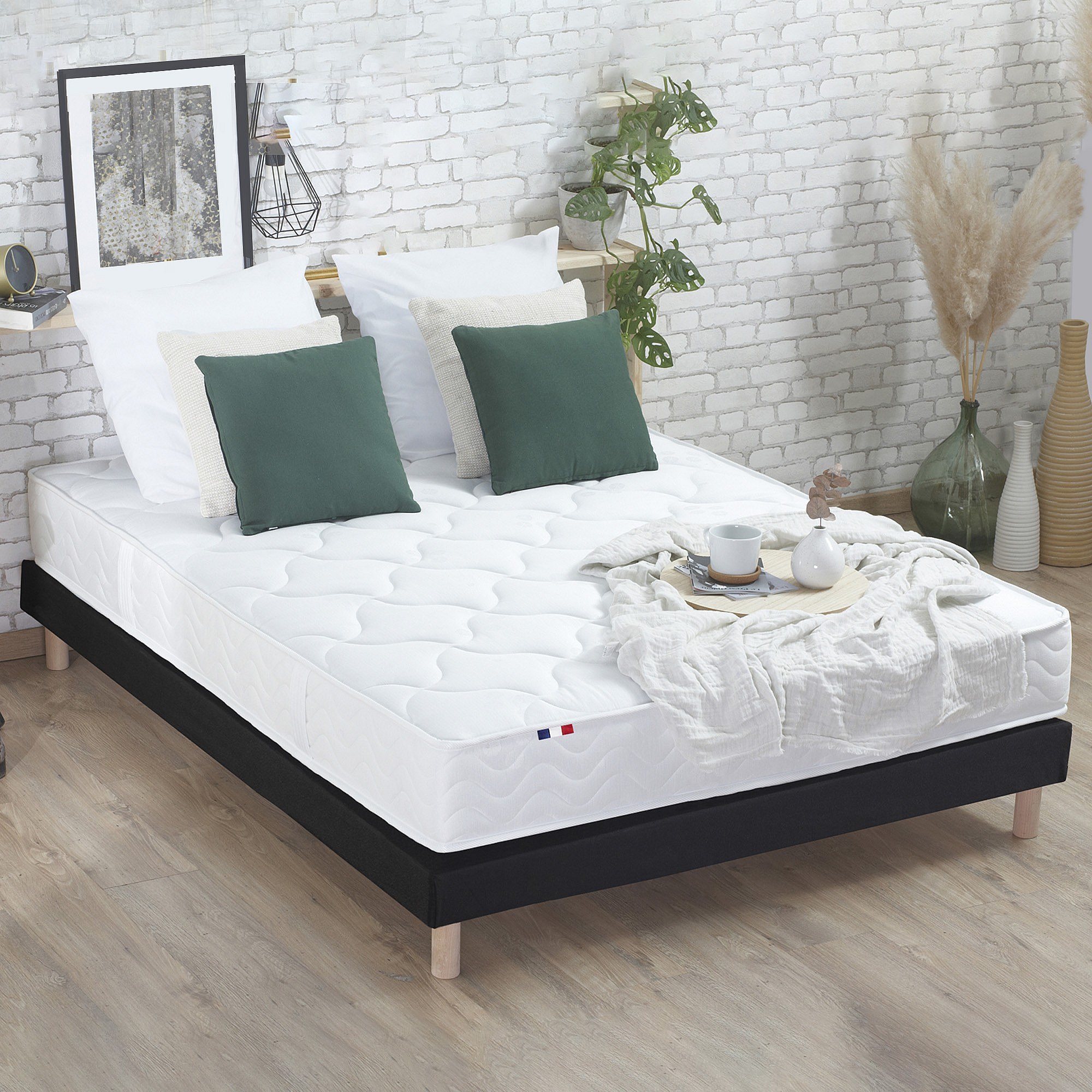 Ensemble matelas à ressorts 5 zones ÉTOILE avec sommier - confort français Dimensions - 140 x 190 cm, Sommier - Noir