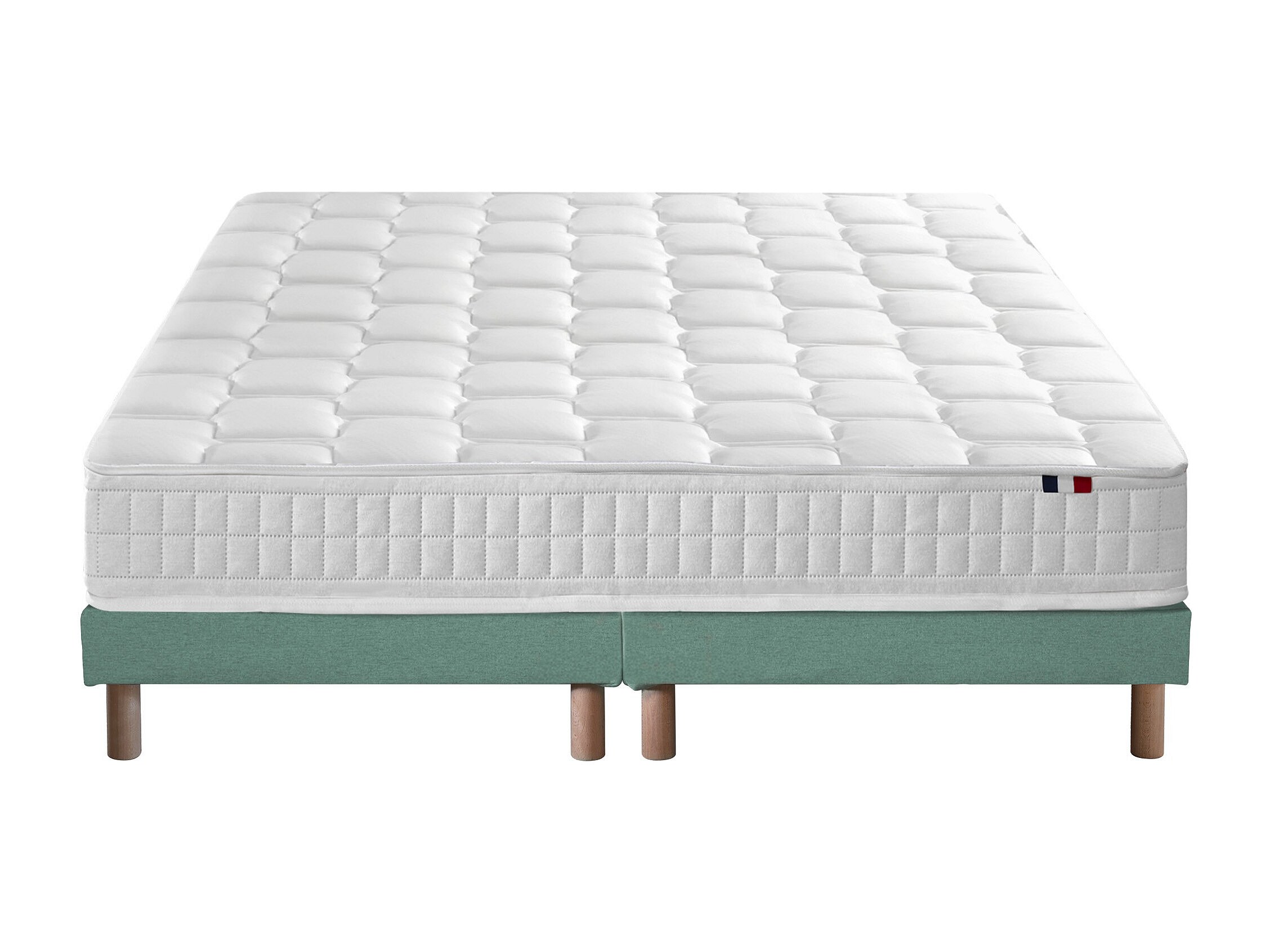 Ensemble literie : matelas à ressorts COSMOS et sommier - qualité française Dimensions - 2x90 x 200 cm, Sommier - Vert celadon