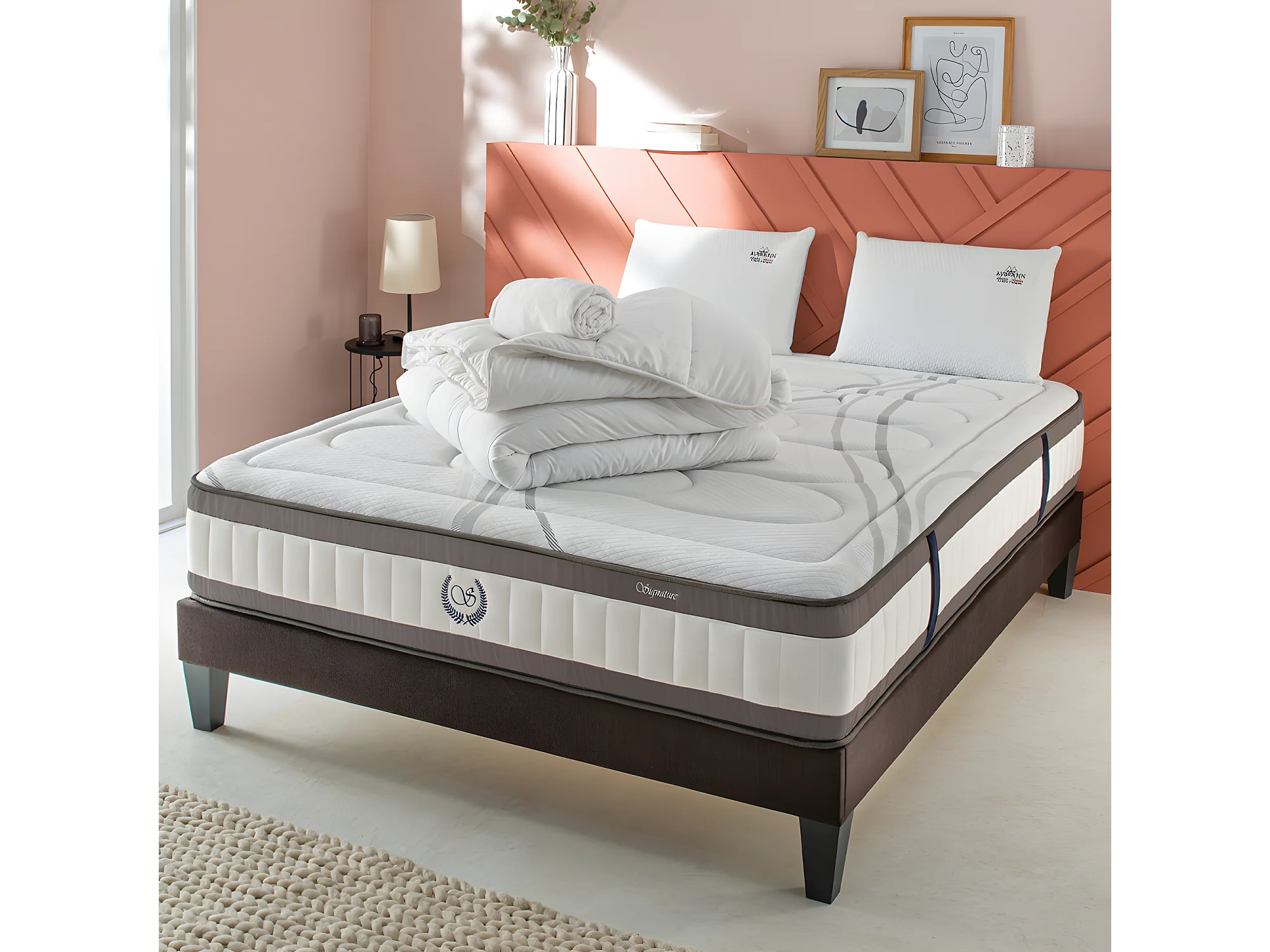 Ensemble Matelas Signature Ressorts ensachés Accueil mémoire + sommier gris + accessoires -180 x 200