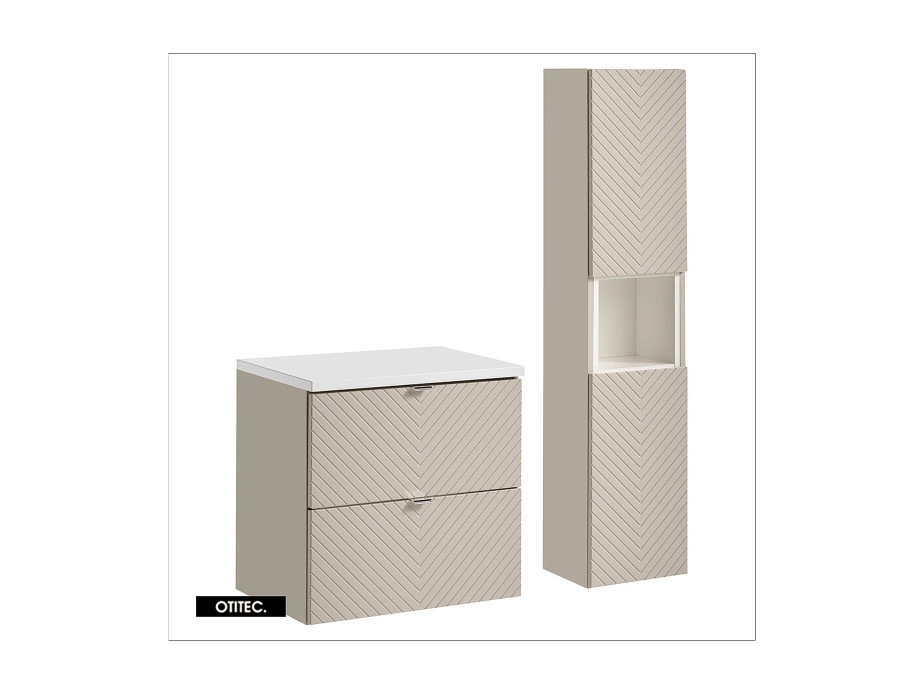 Ensemble meuble de salle de bain - 60 cm - avec plan - avec vasque à poser - avec colonne - 2 tiroirs - DANO