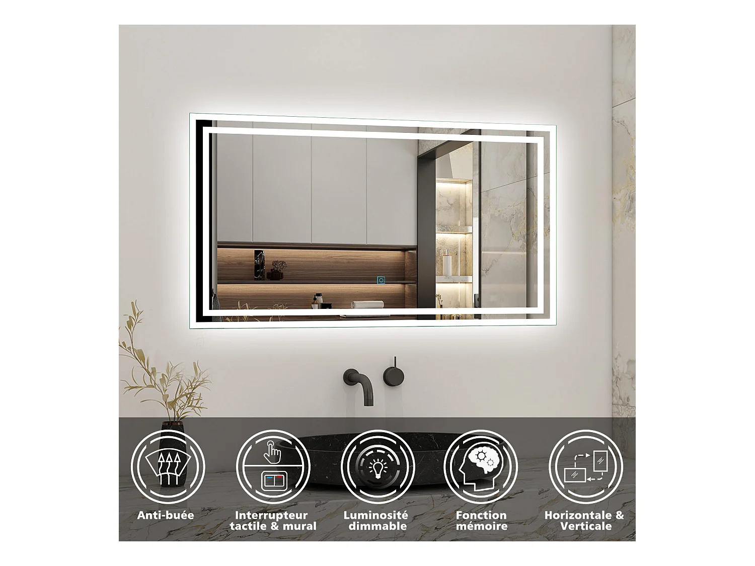 Ensemble meuble de salle de bains 60cm, vasque + colonne + LED miroir,anthracite