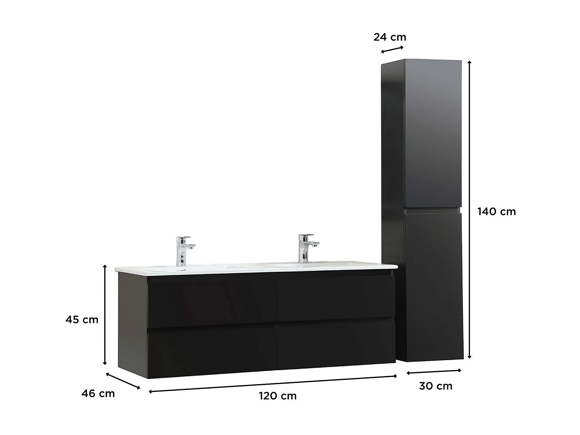 Ensemble meuble double vasque noir carbone 120cm + vasque + colonne