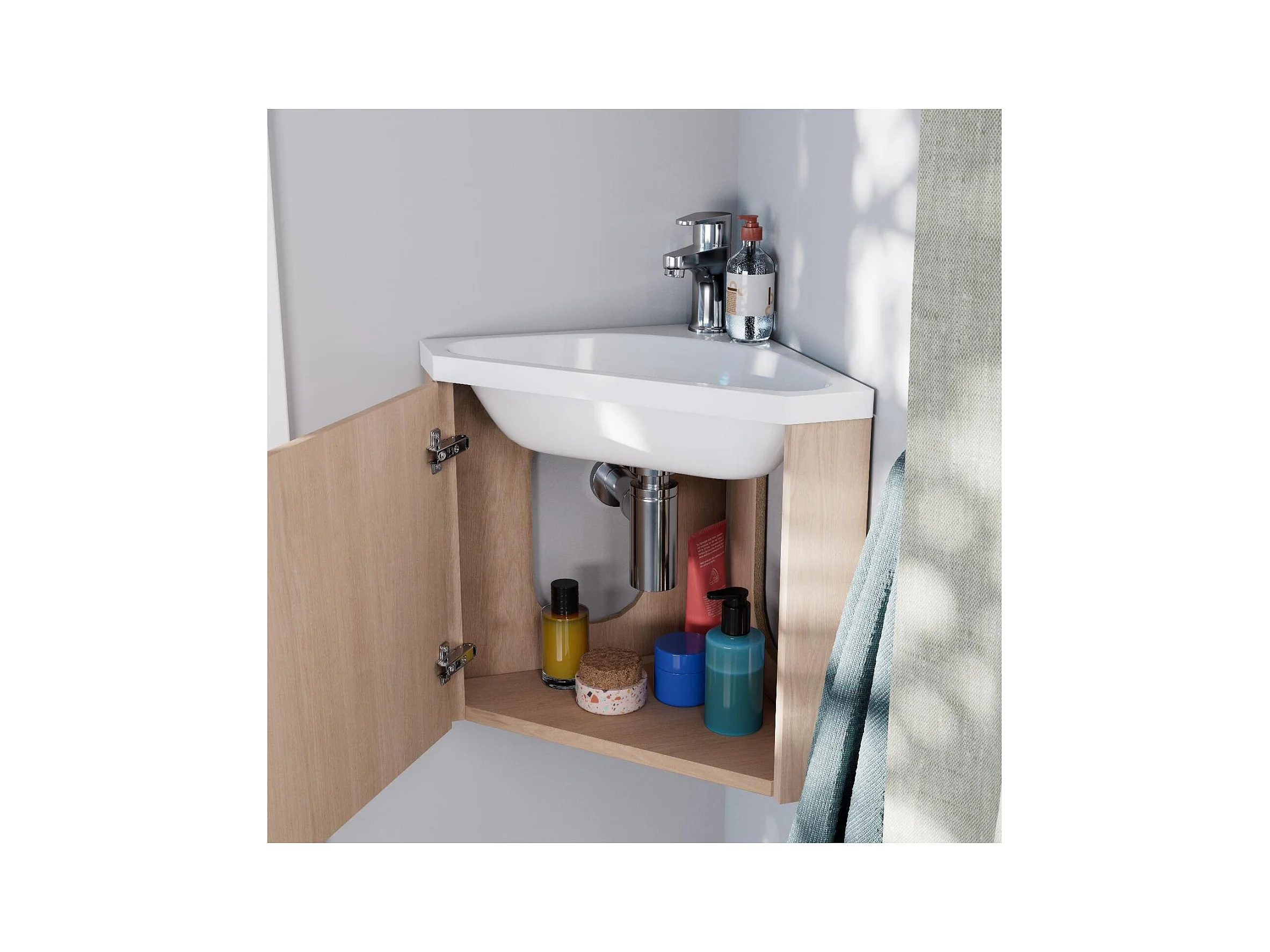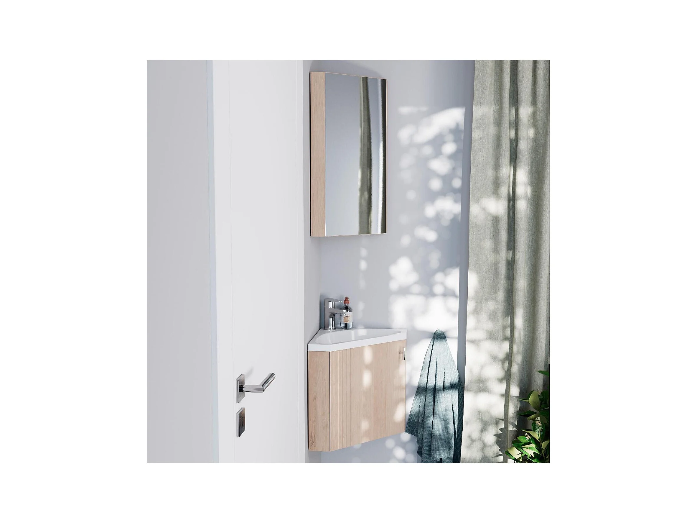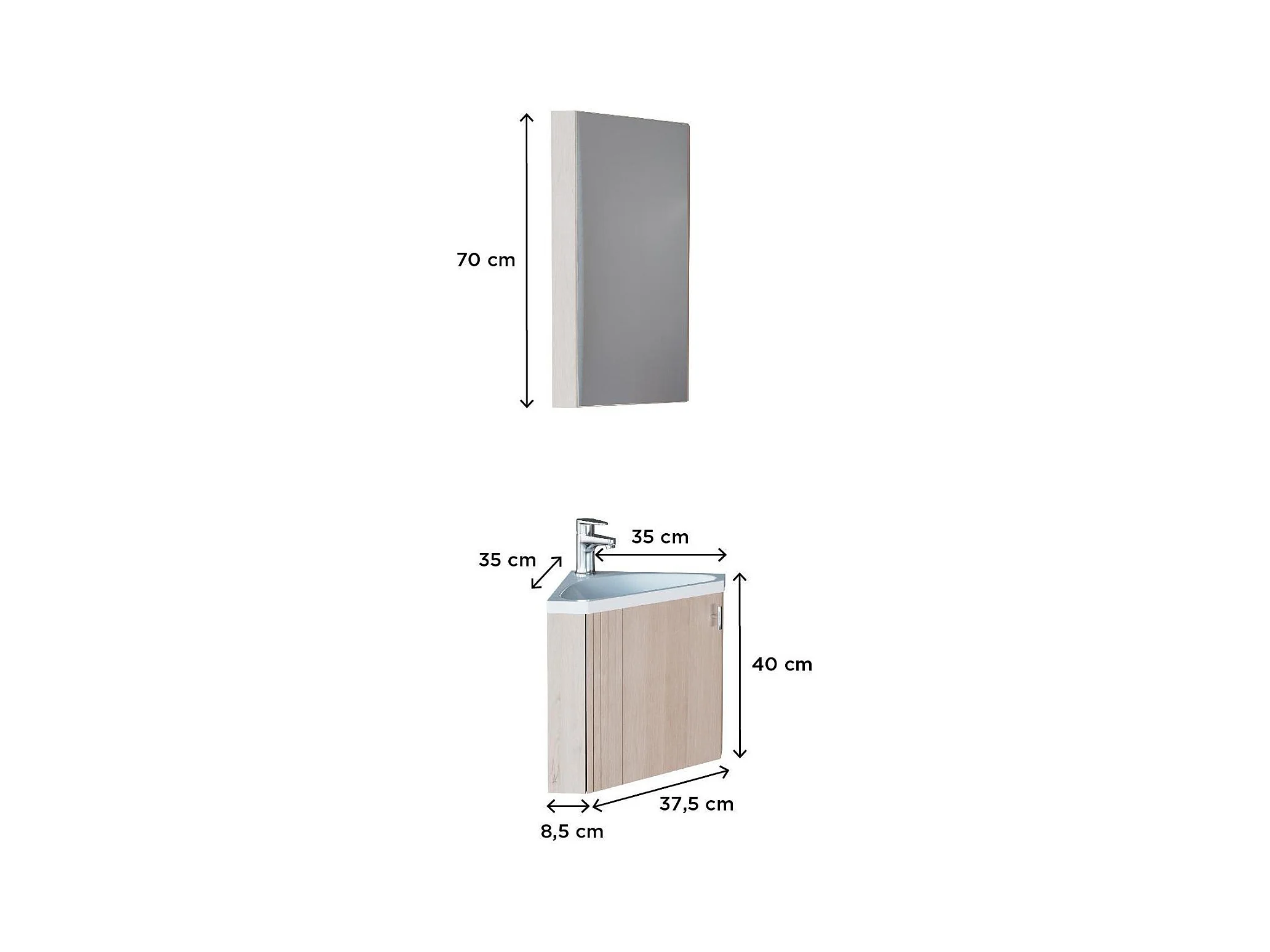 Ensemble lave-mains d'angle décor chêne avec armoire de toilette d'angle
