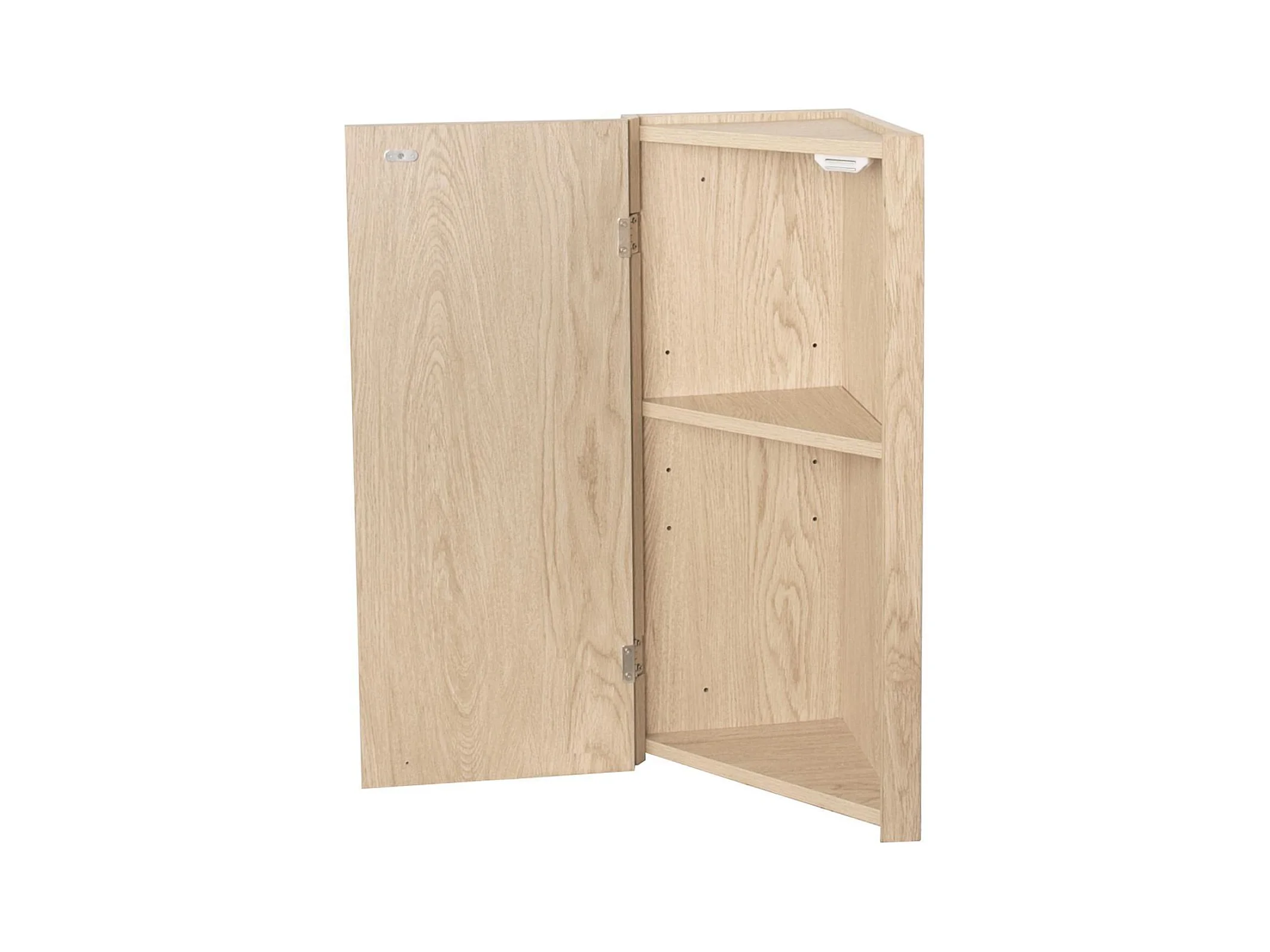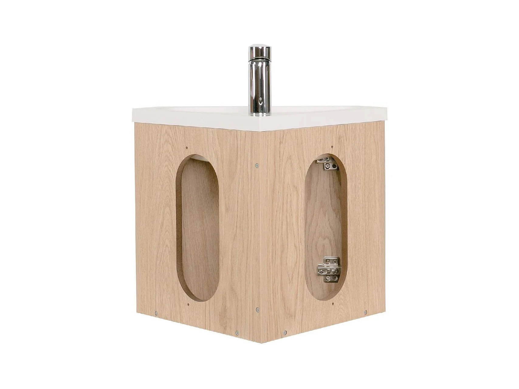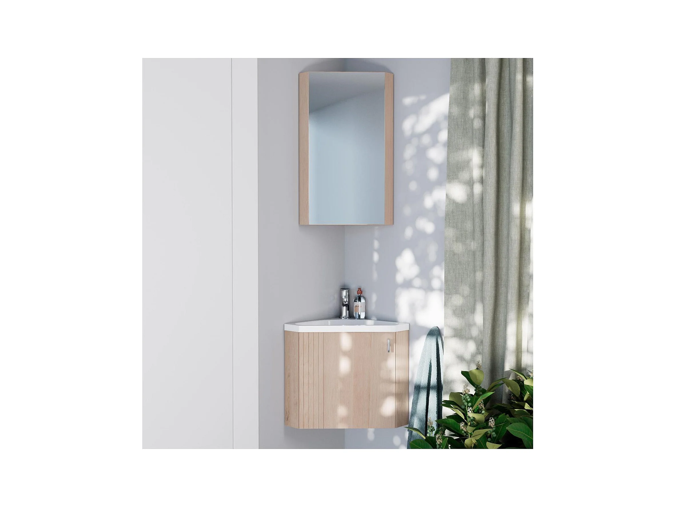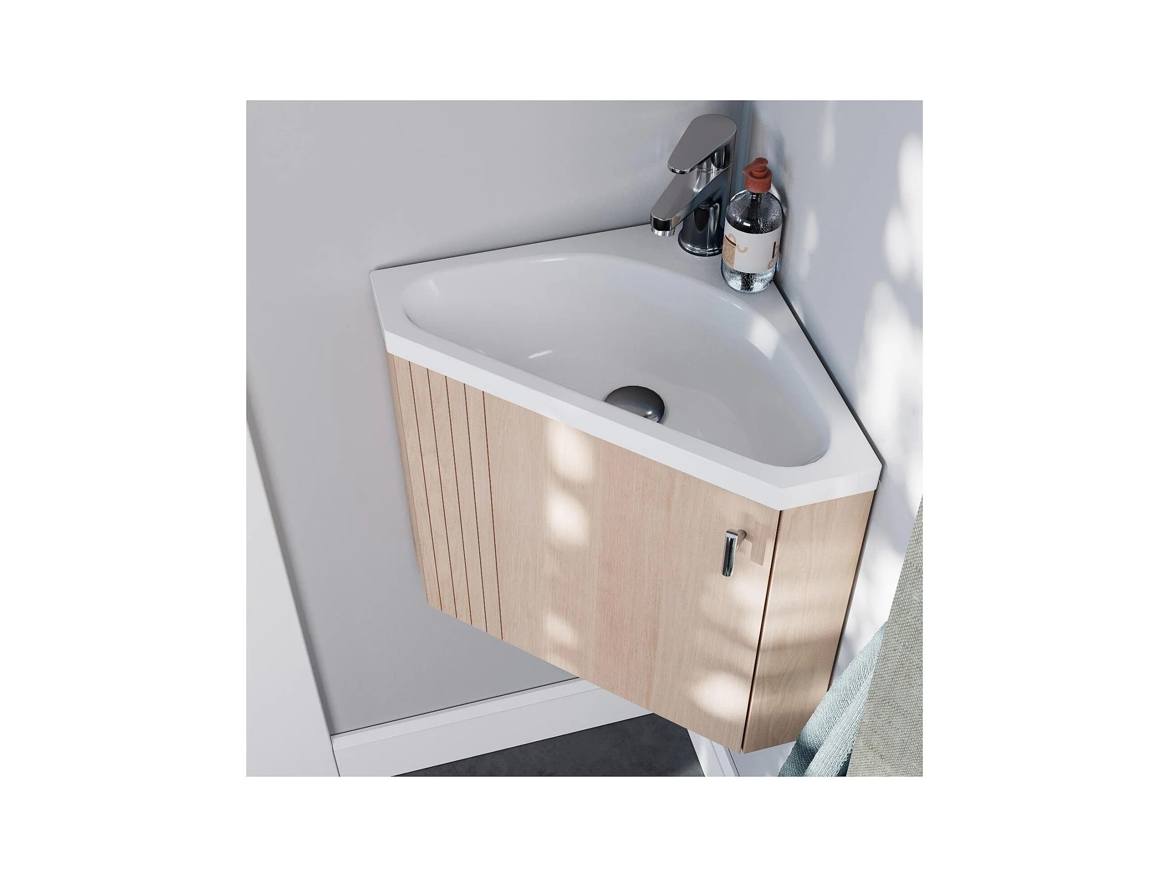 Ensemble lave-mains d'angle décor chêne avec armoire de toilette d'angle