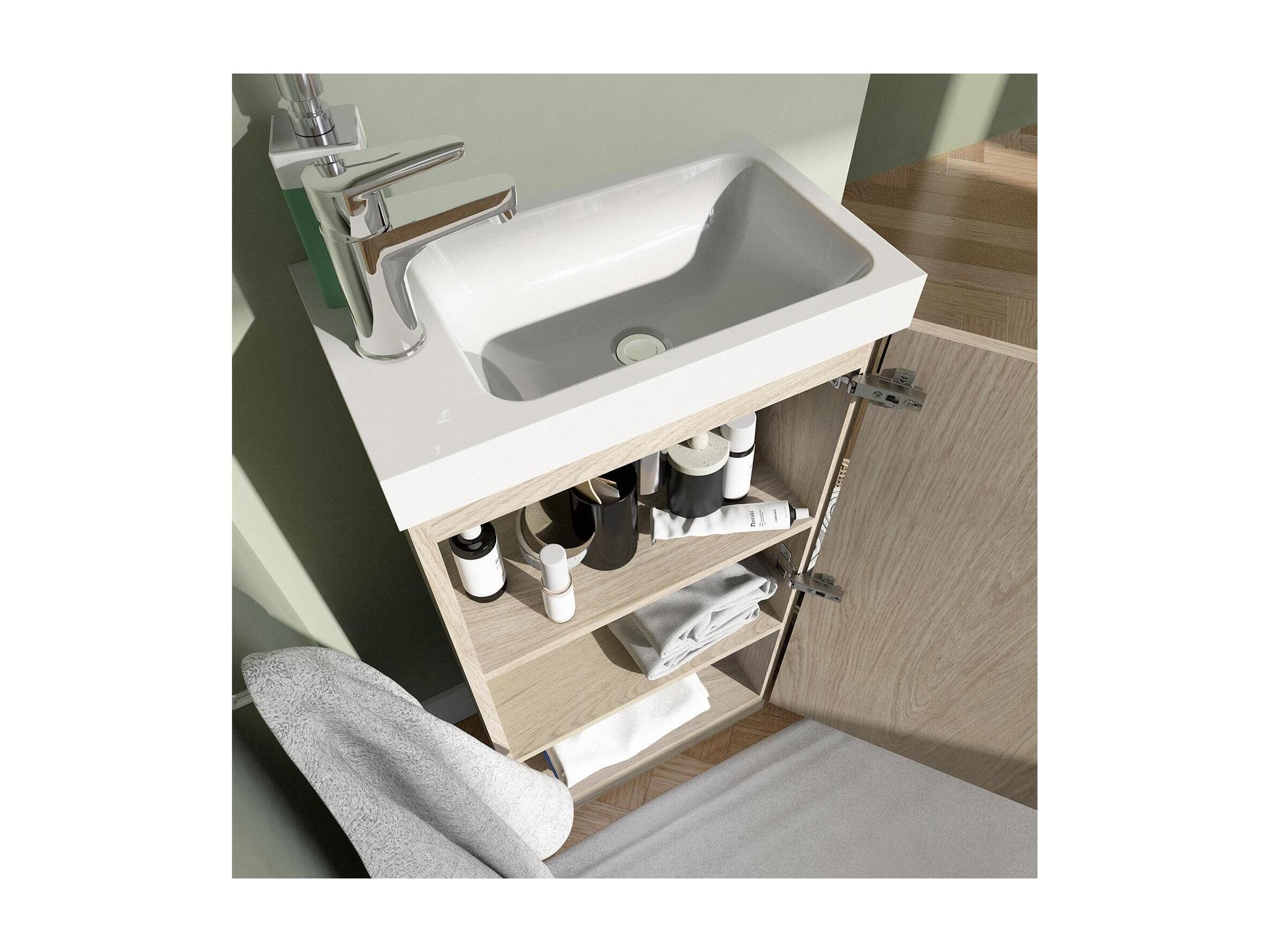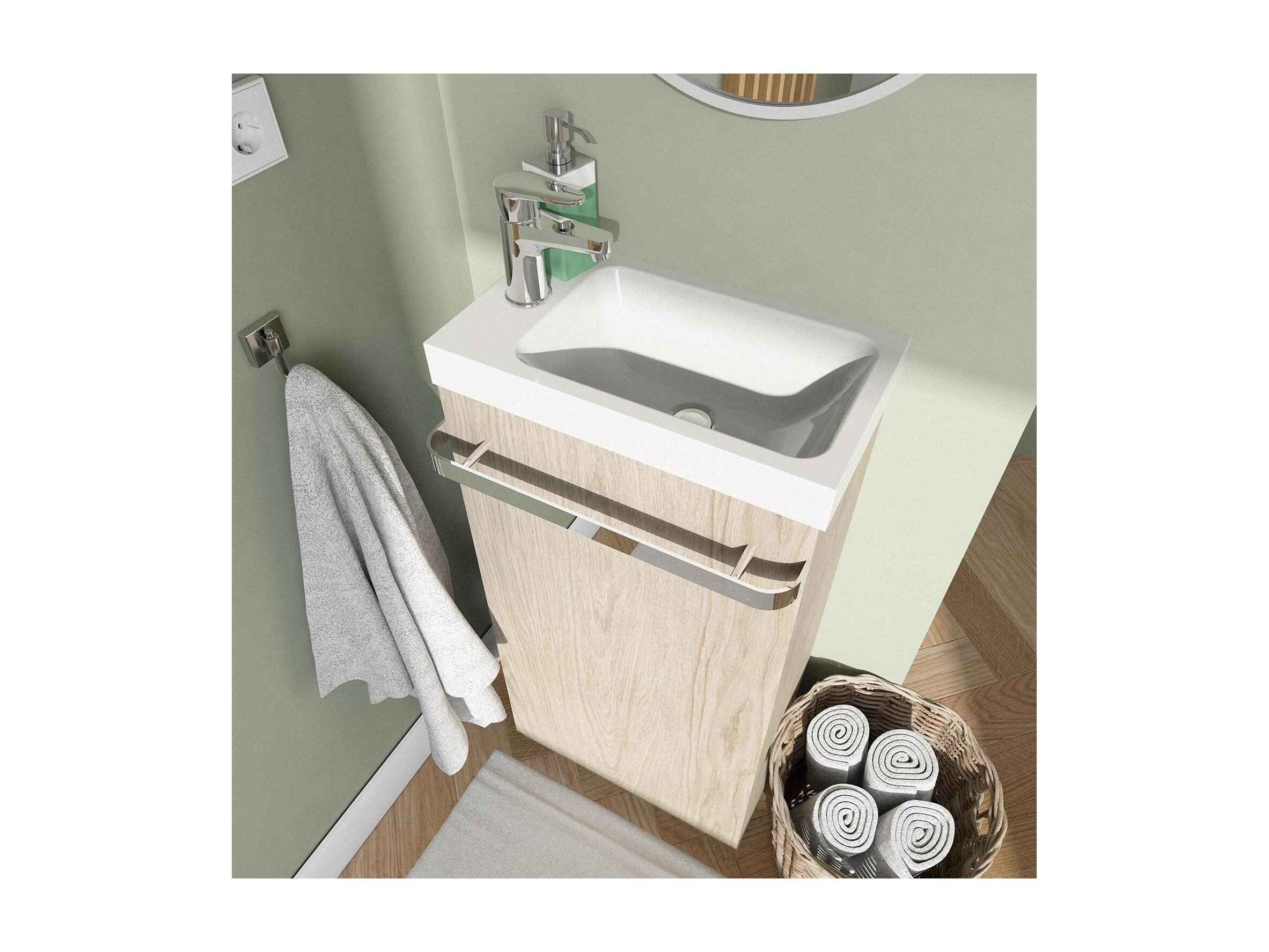 Ensemble lave-mains sur pieds décor chêne avec robinet chromé