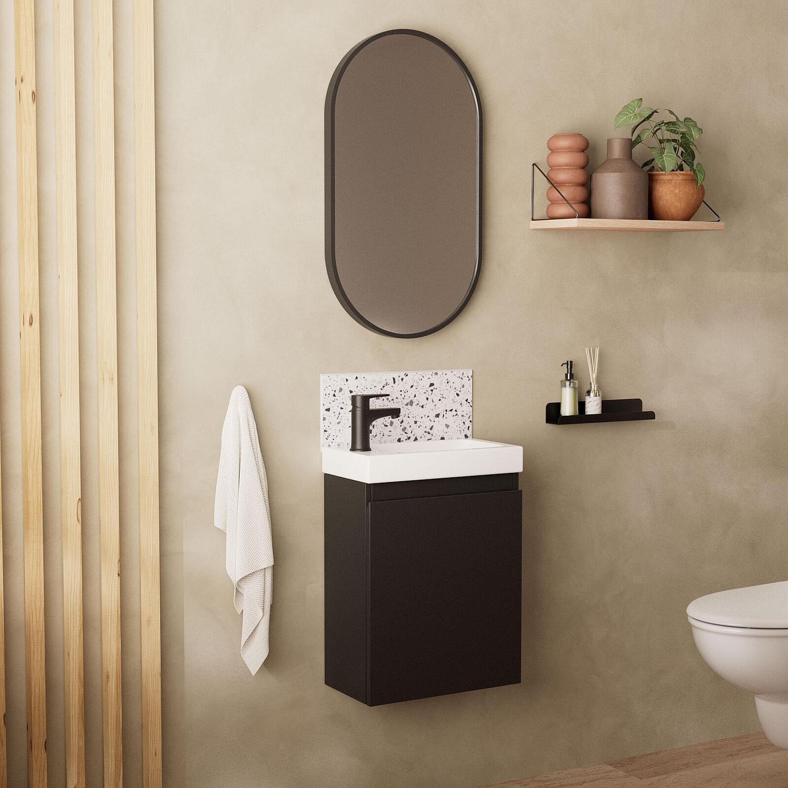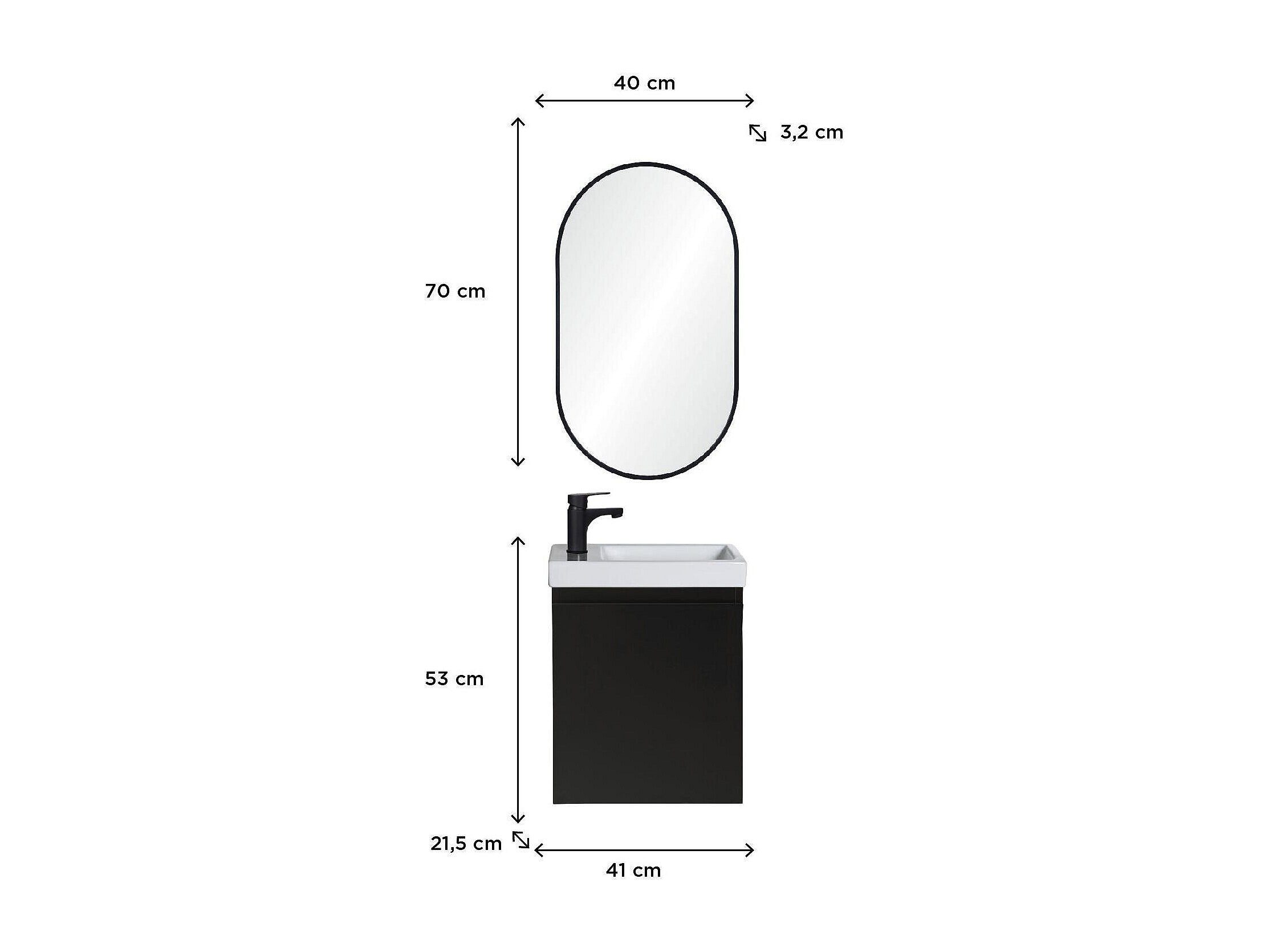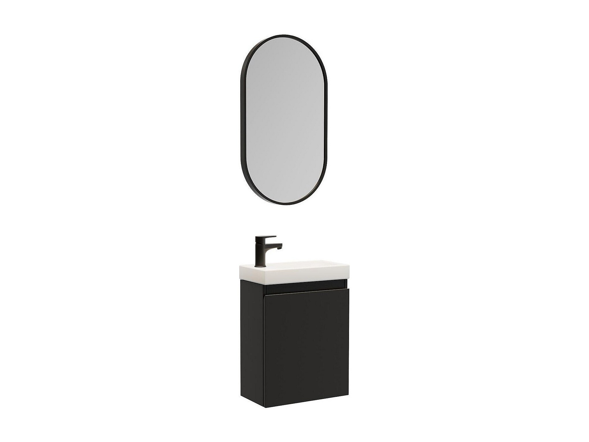 Ensemble lave-mains suspendu avec robinet noir et miroir ovale