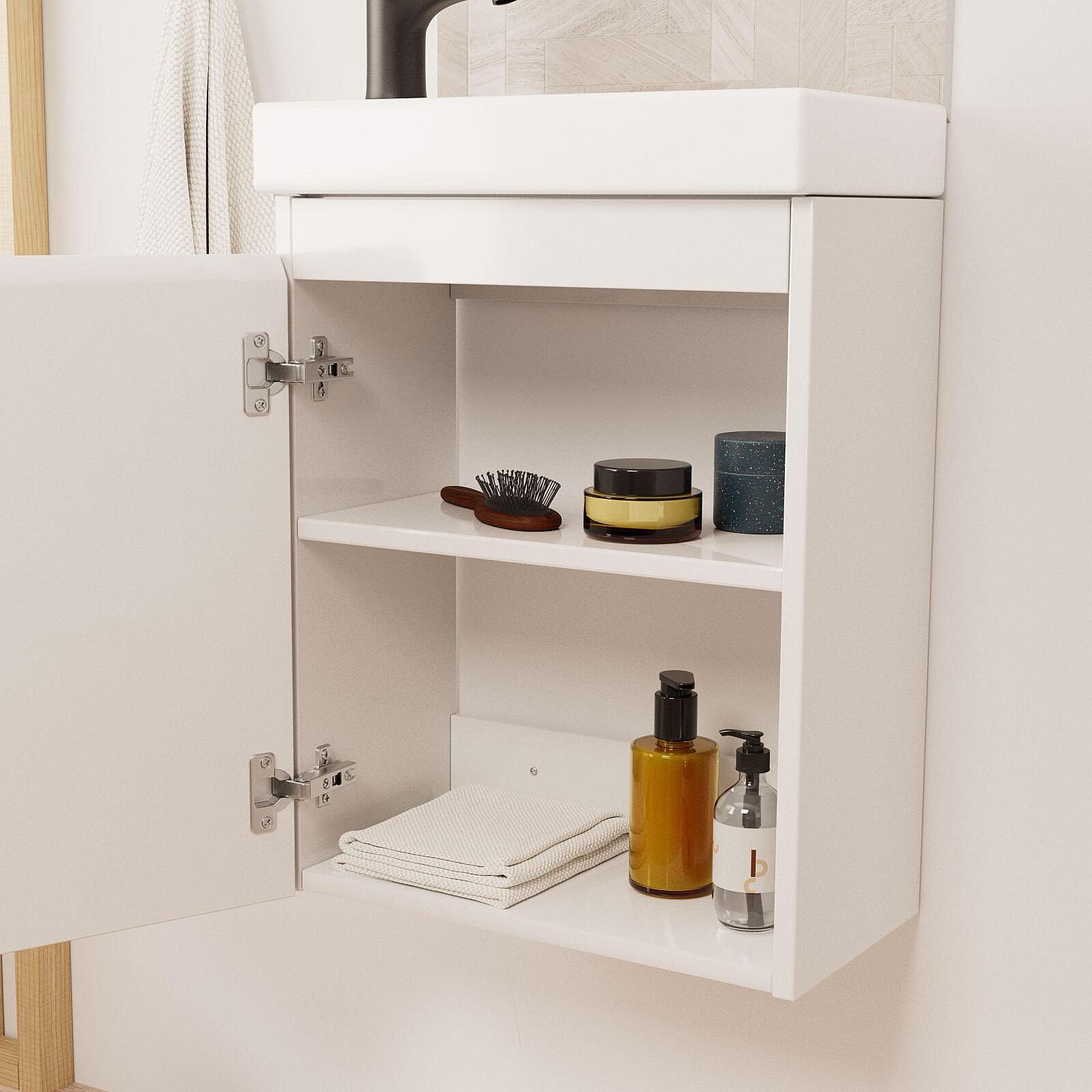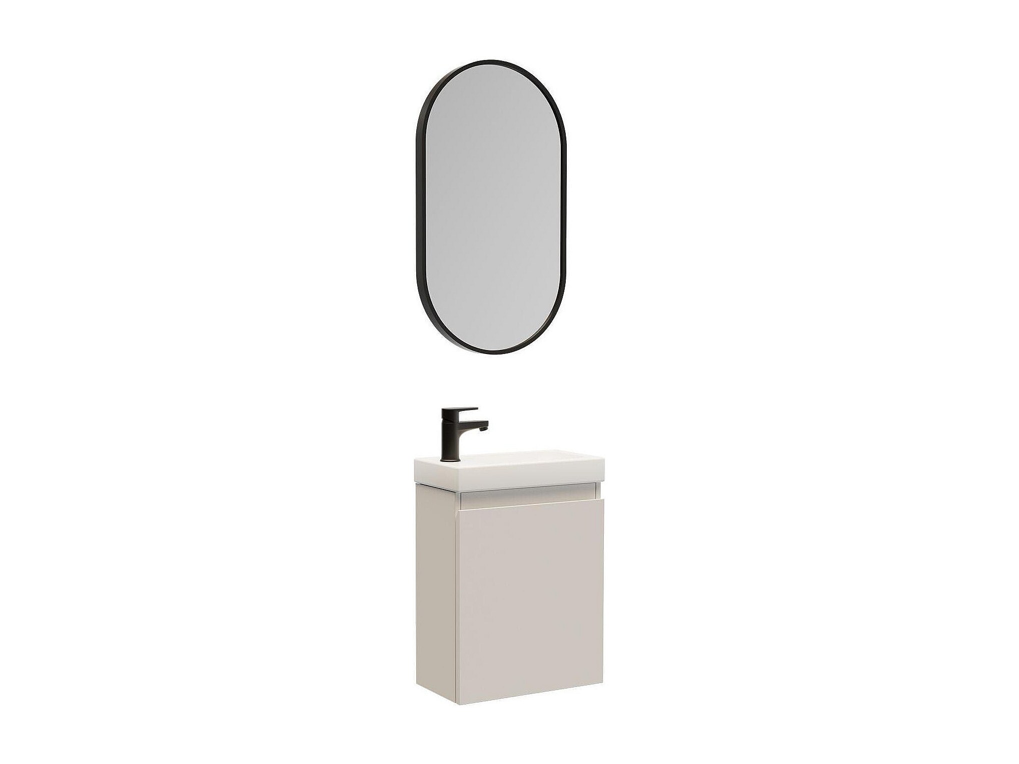 Ensemble lave-mains suspendu avec robinet noir et miroir ovale