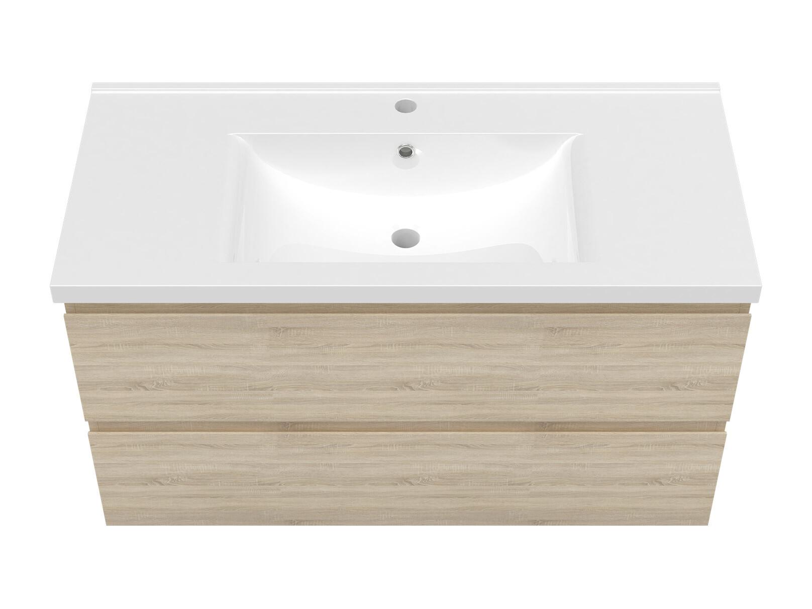Ensemble meuble Salle de Bain 100cm avec colonne + miroir lumineux dimmable chêne wotan
