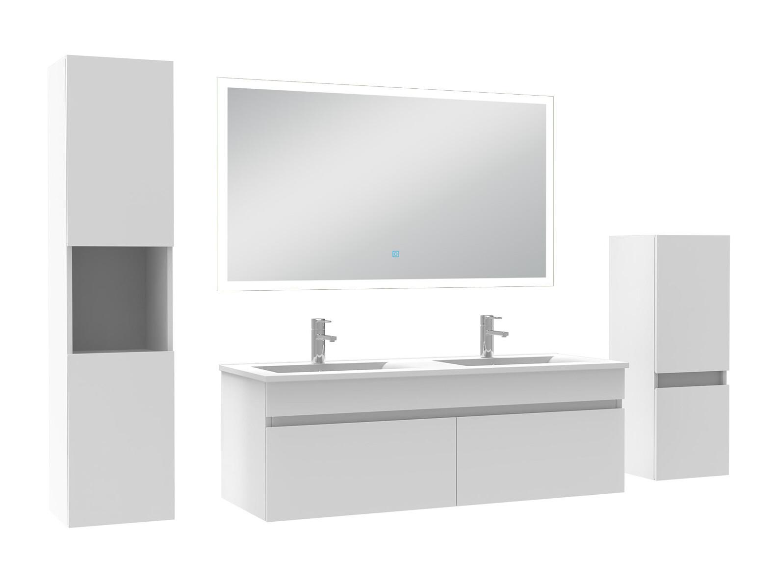 Ensemble meuble Salle de Bain 120cm avec double vasque + colonne + miroir lumineux dimmable blanc