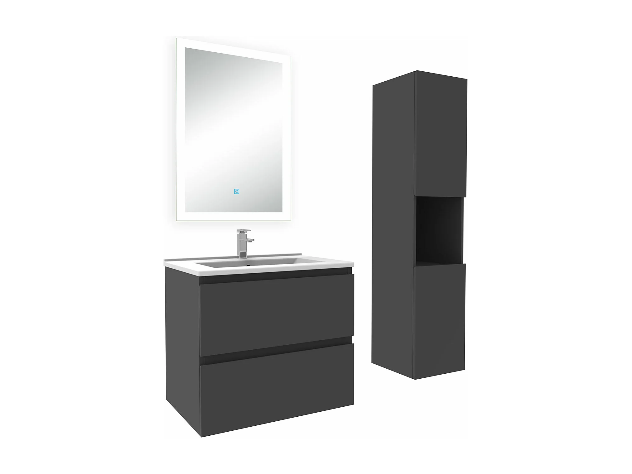 Ensemble meuble Salle de Bain 60cm avec vasque et colonne et miroir lumineux dimmable anthracite