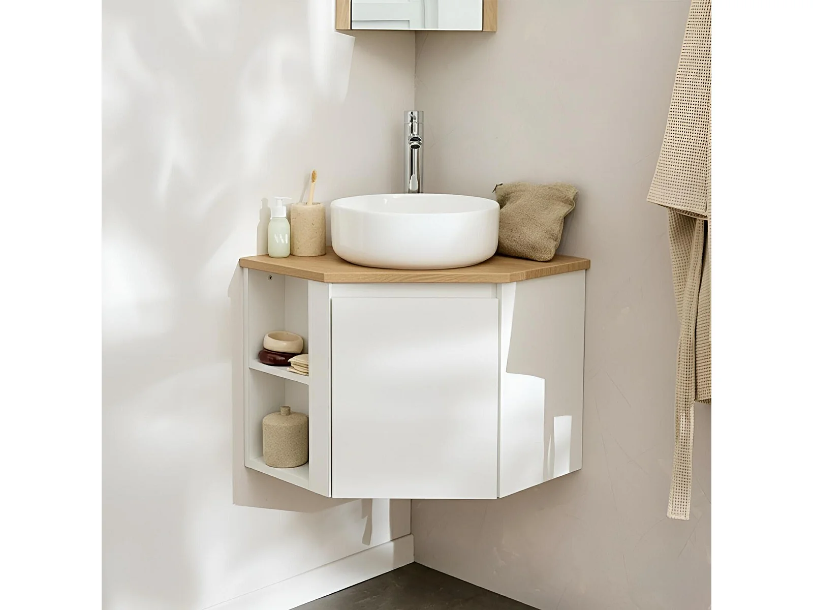 Ensemble meuble sous vasque d'angle + vasque blanche SORRENTO