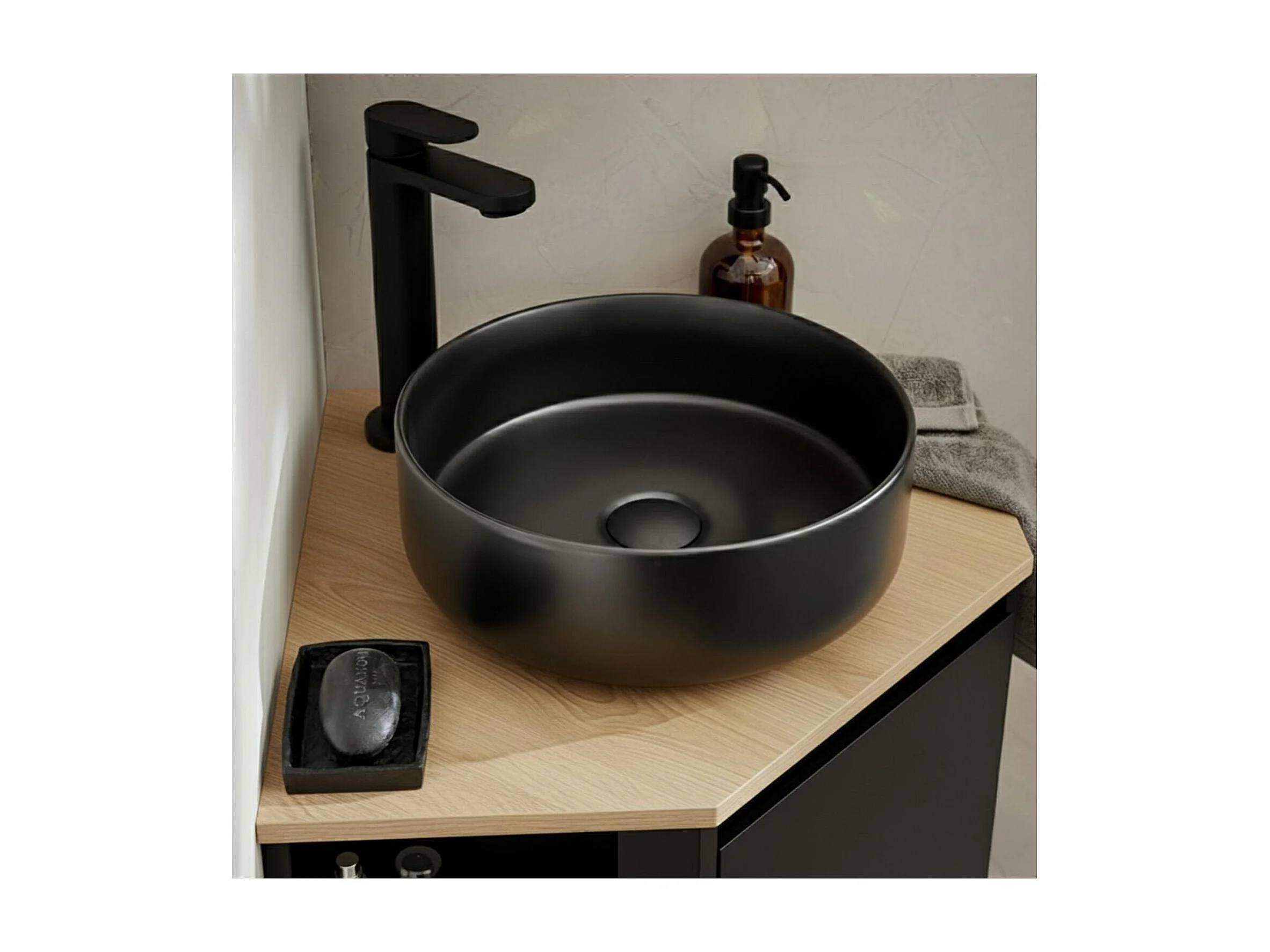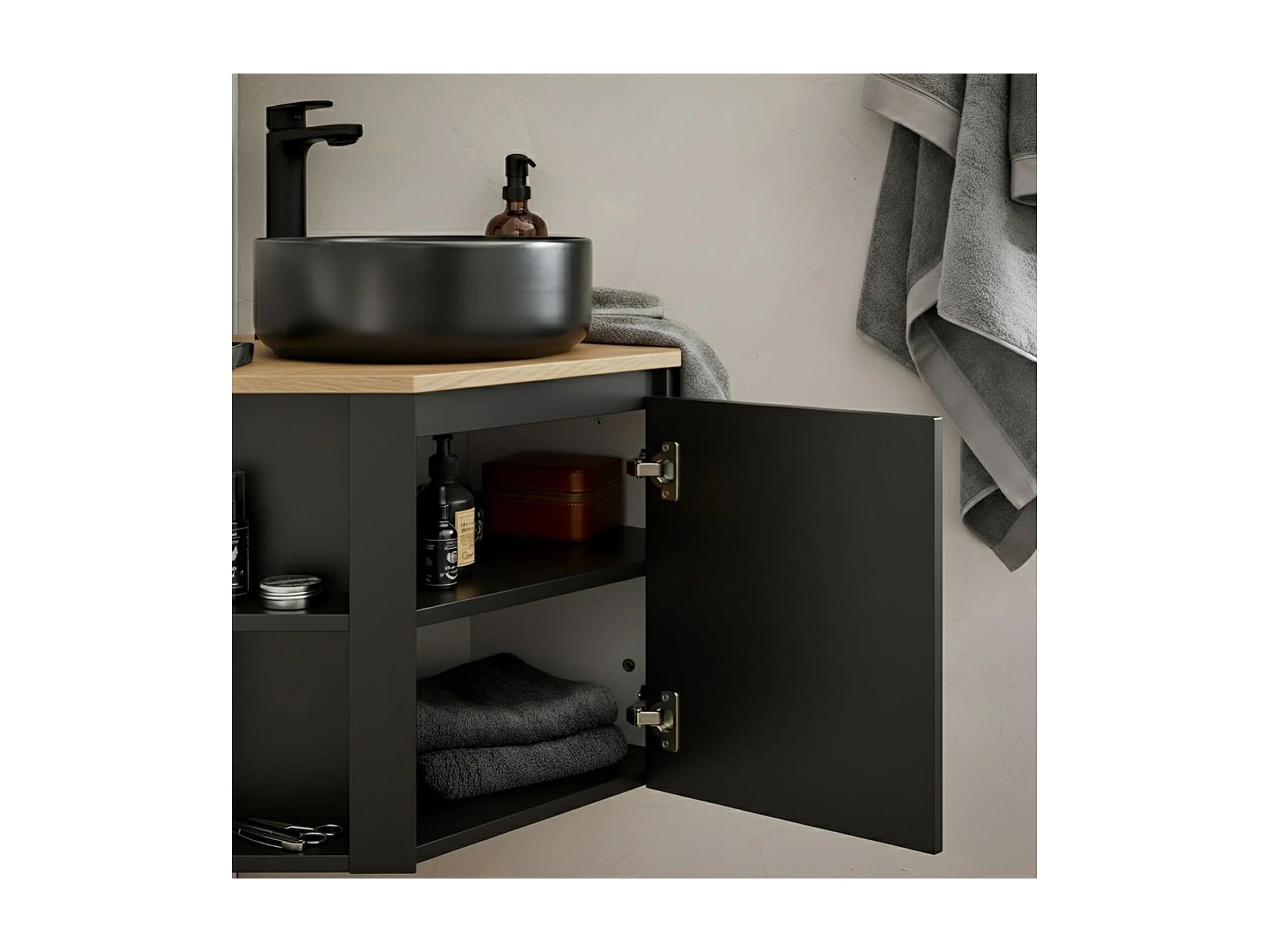 Ensemble meuble sous vasque d'angle + vasque noire + robinet SORRENTO