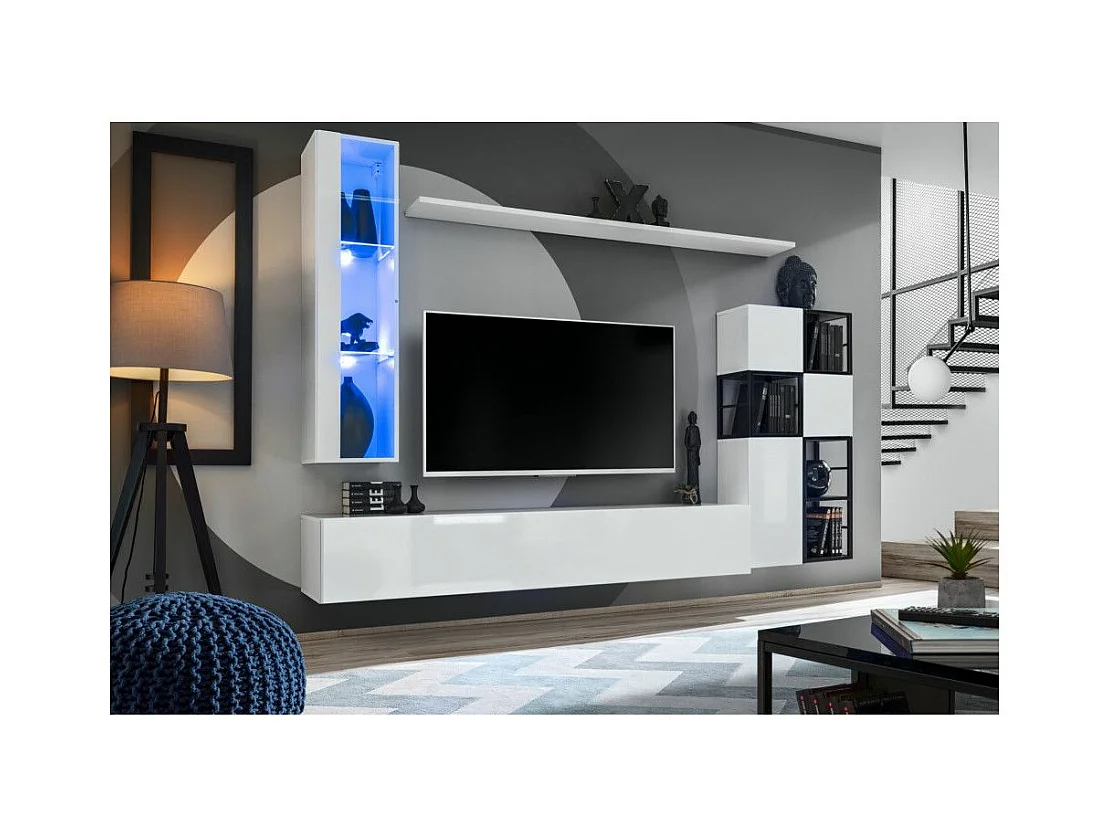 Ensemble Meuble TV Design "Switch II" 250cm Blanc & Noir
