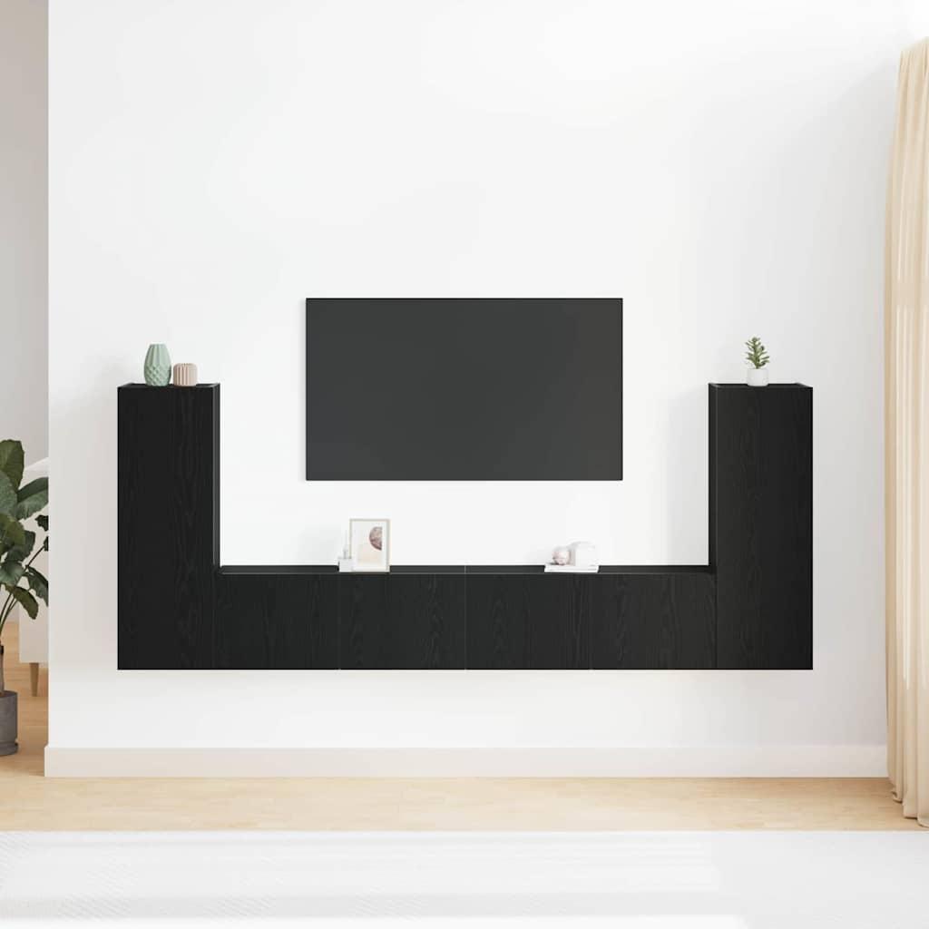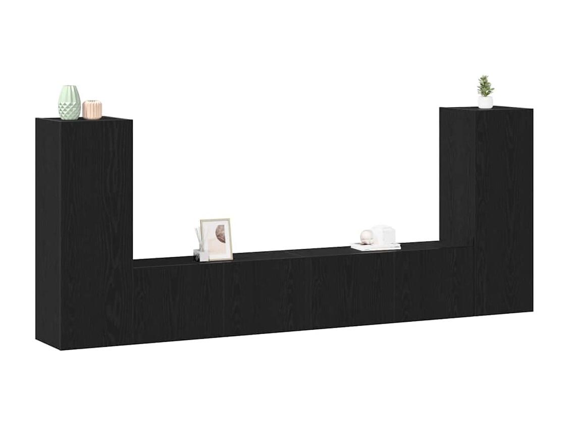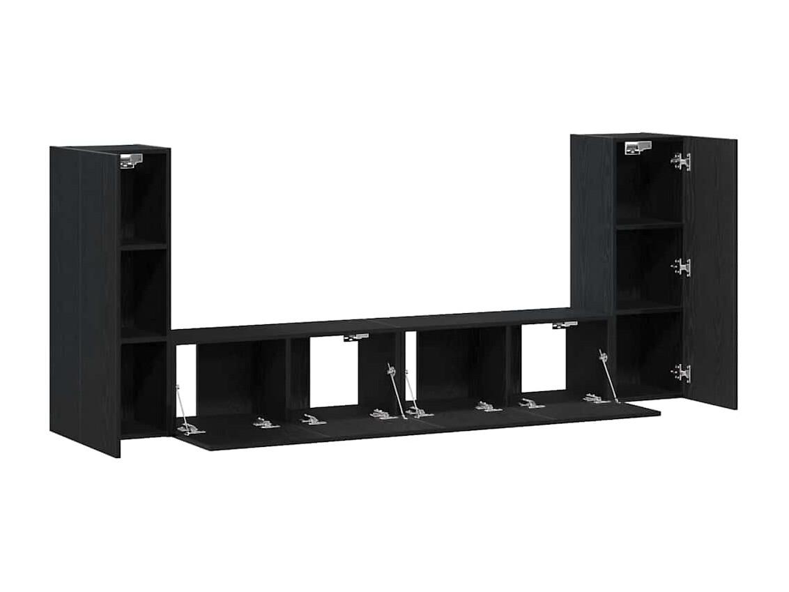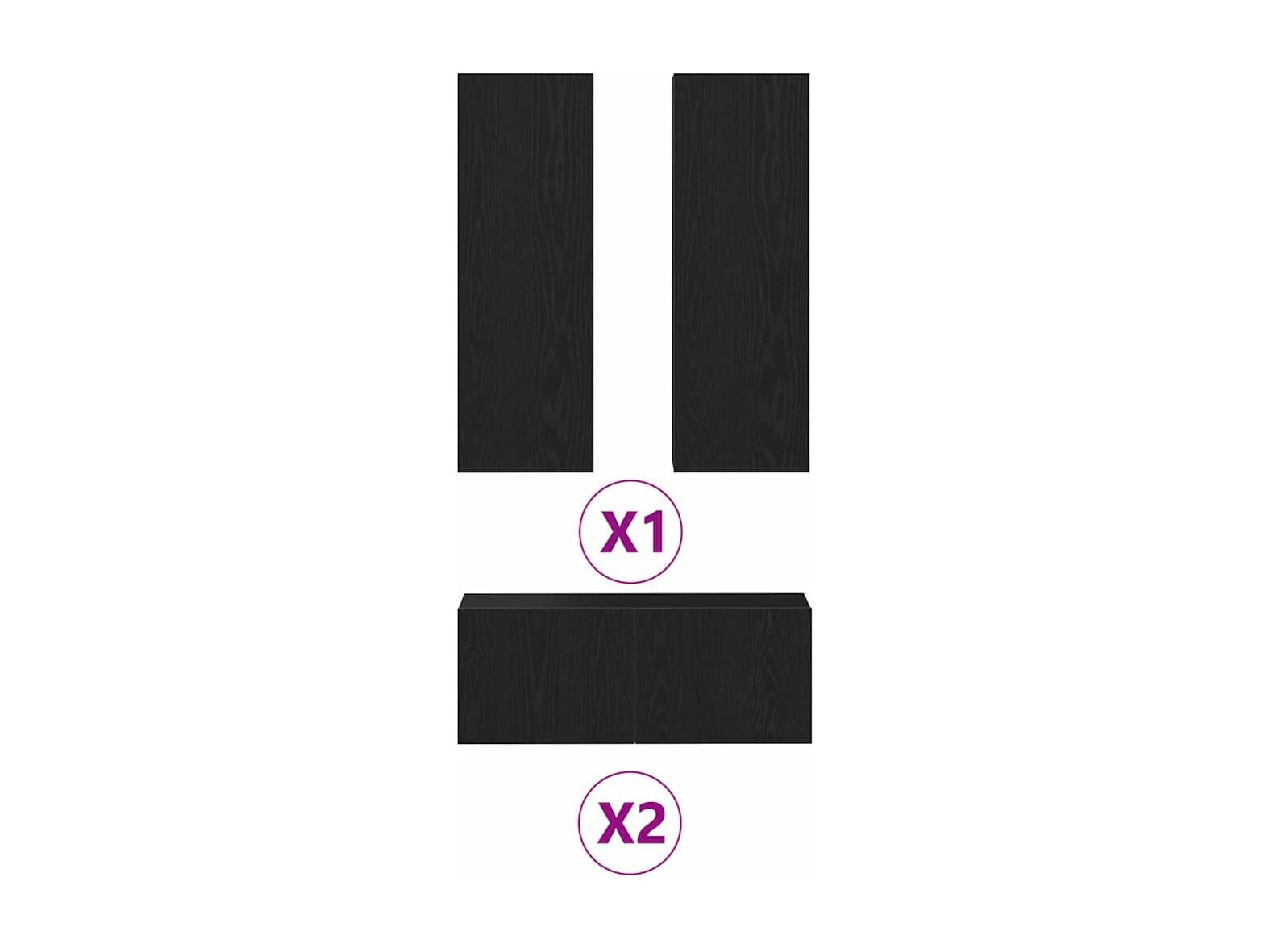Ensemble meuble TV mural 4 pièces - Chêne noir, bois reconstitué