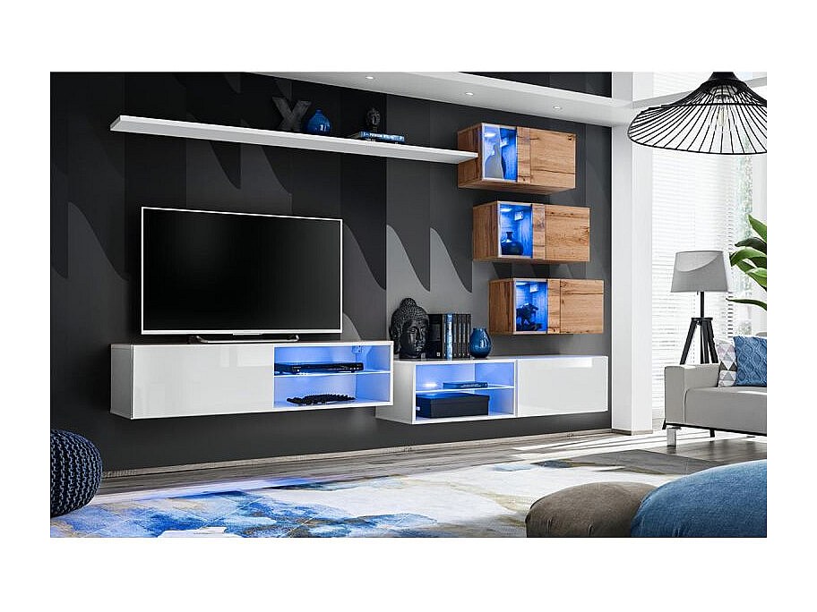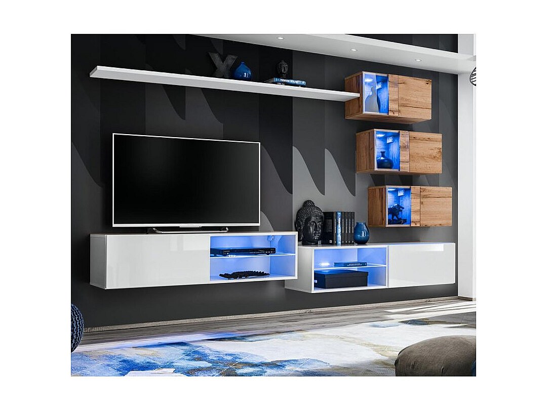 Ensemble Meuble TV "Switch XXIV" 250cm Blanc & Naturel