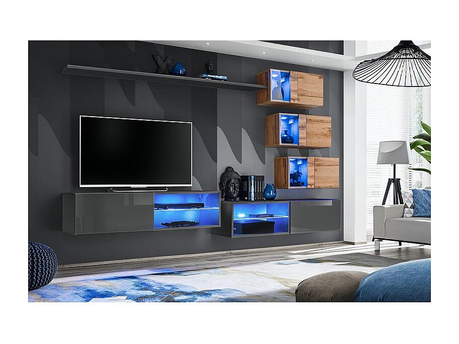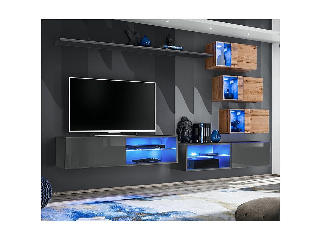 Ensemble Meuble TV "Switch XXIV" 250cm Gris & Naturel
