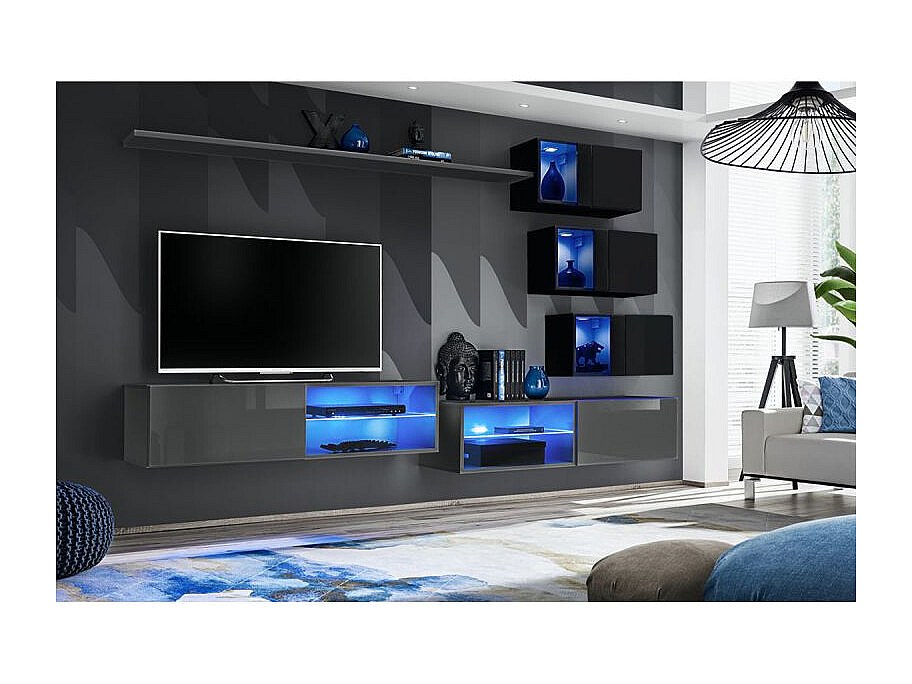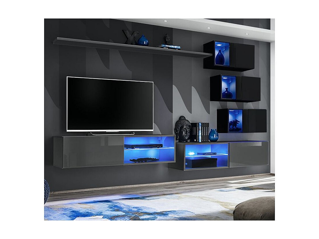Ensemble meuble TV mural Switch XXIV - L 260 x P 40 x H 170 cm - Gris et noir