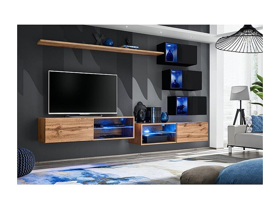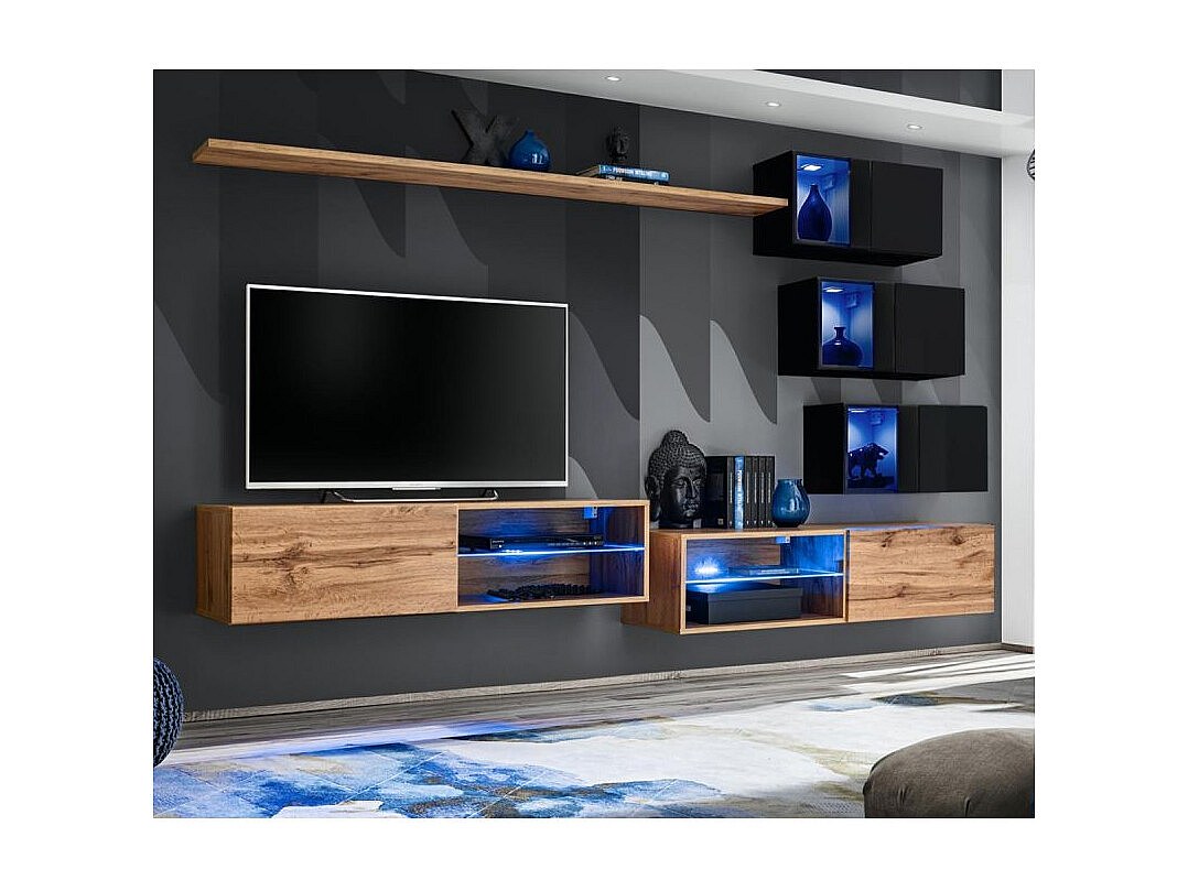 Ensemble meuble TV mural Switch XXIV - L 260 x P 40 x H 170 cm - Marron et noir