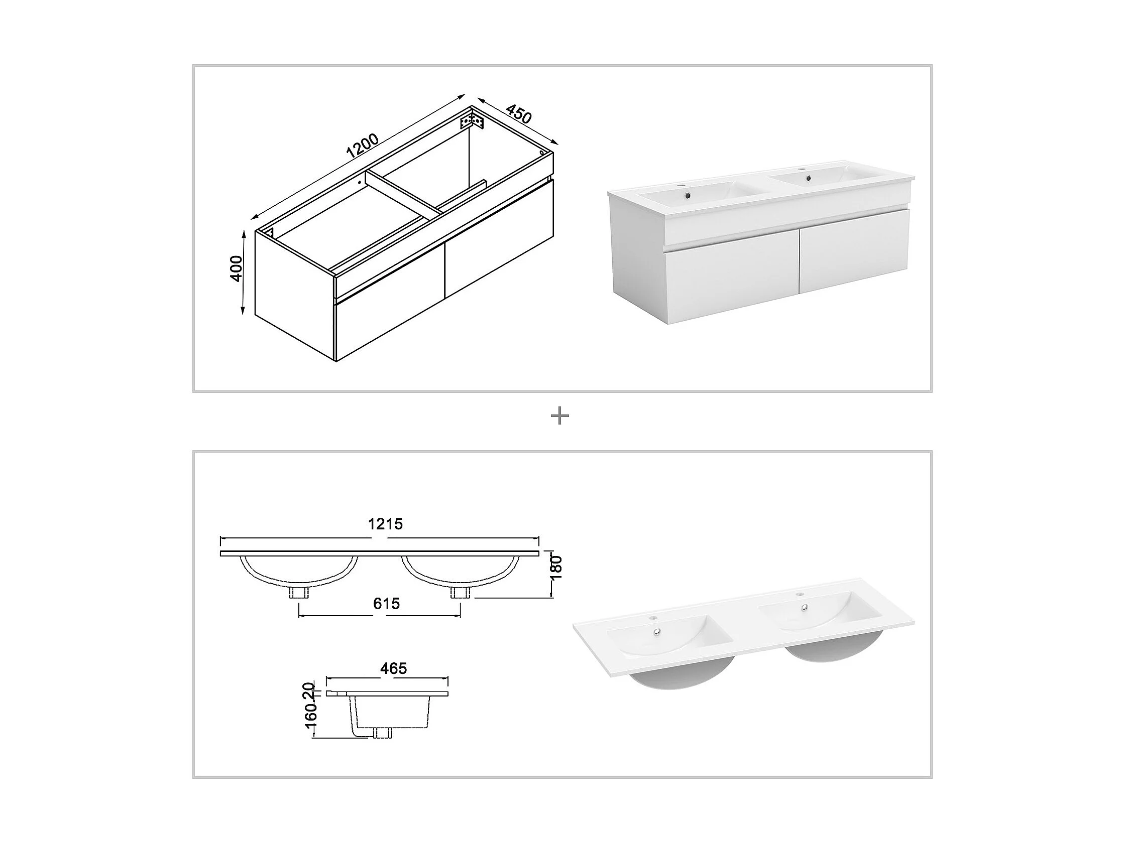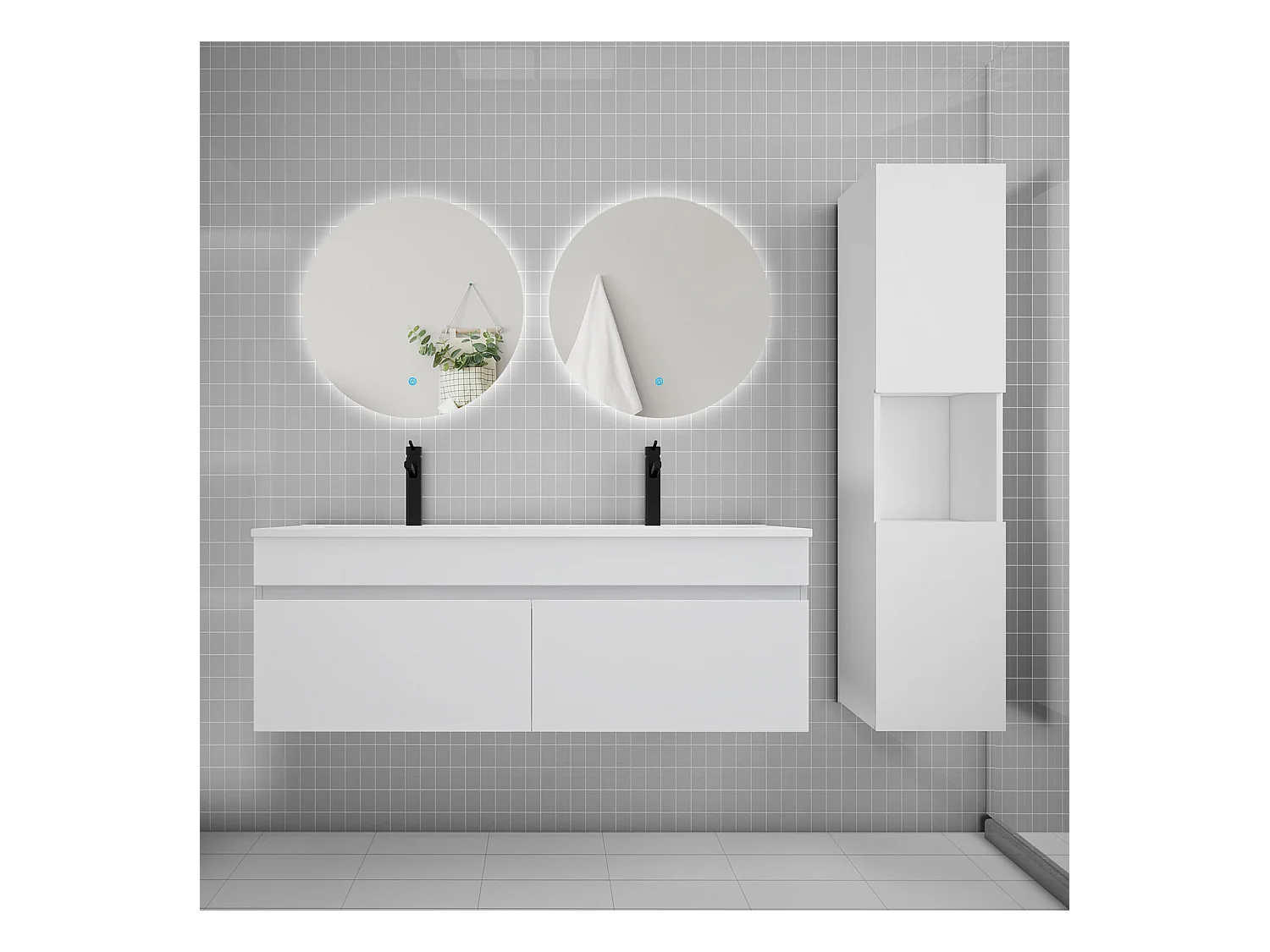 Ensemble meuble vasque 120cm lavabo + colonne + miroir rond,blanc