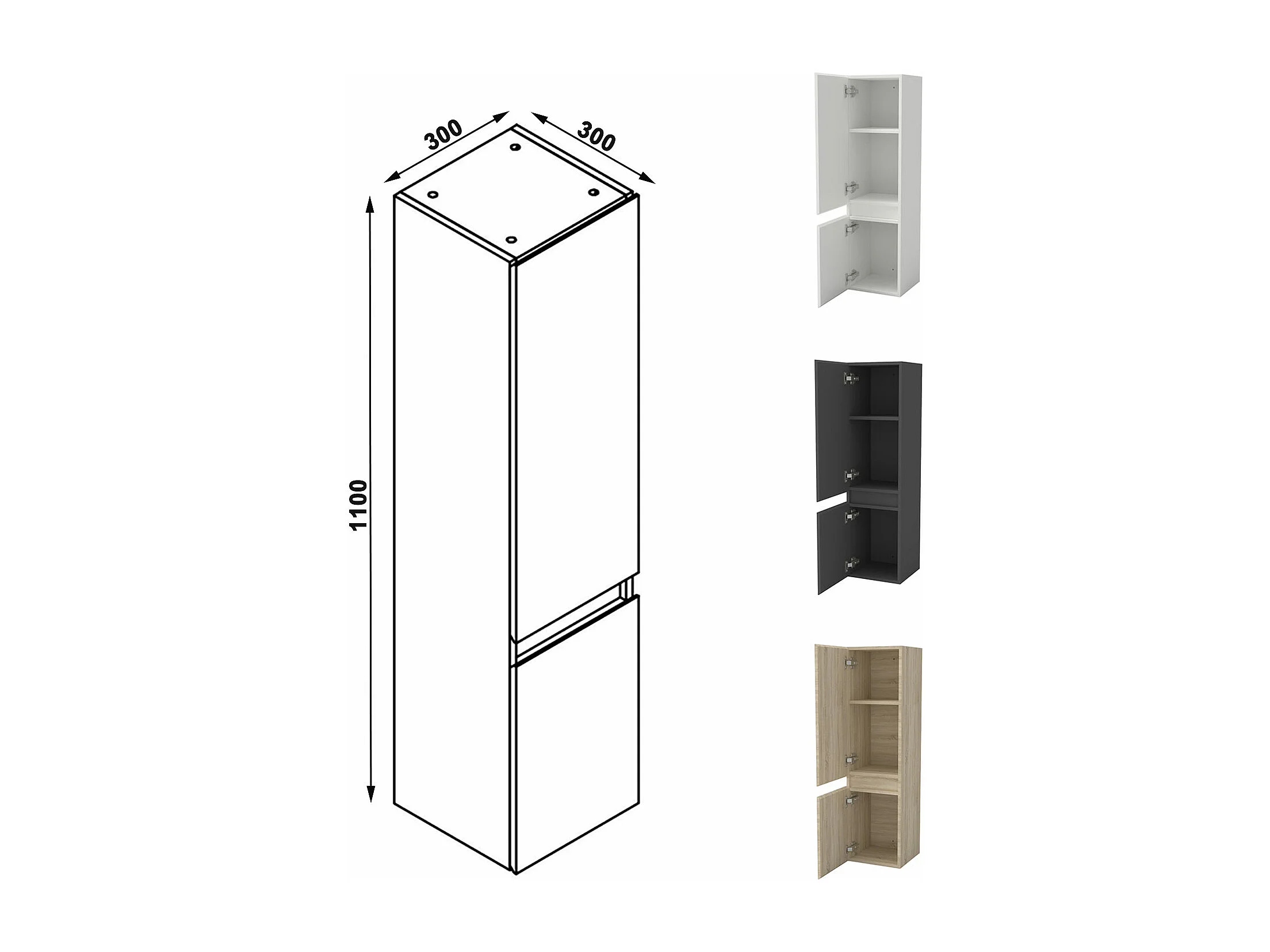 Ensemble meuble vasque L.60cm 2 tiroirs + lavabo + colonne + miroir rond 60cm,blanc