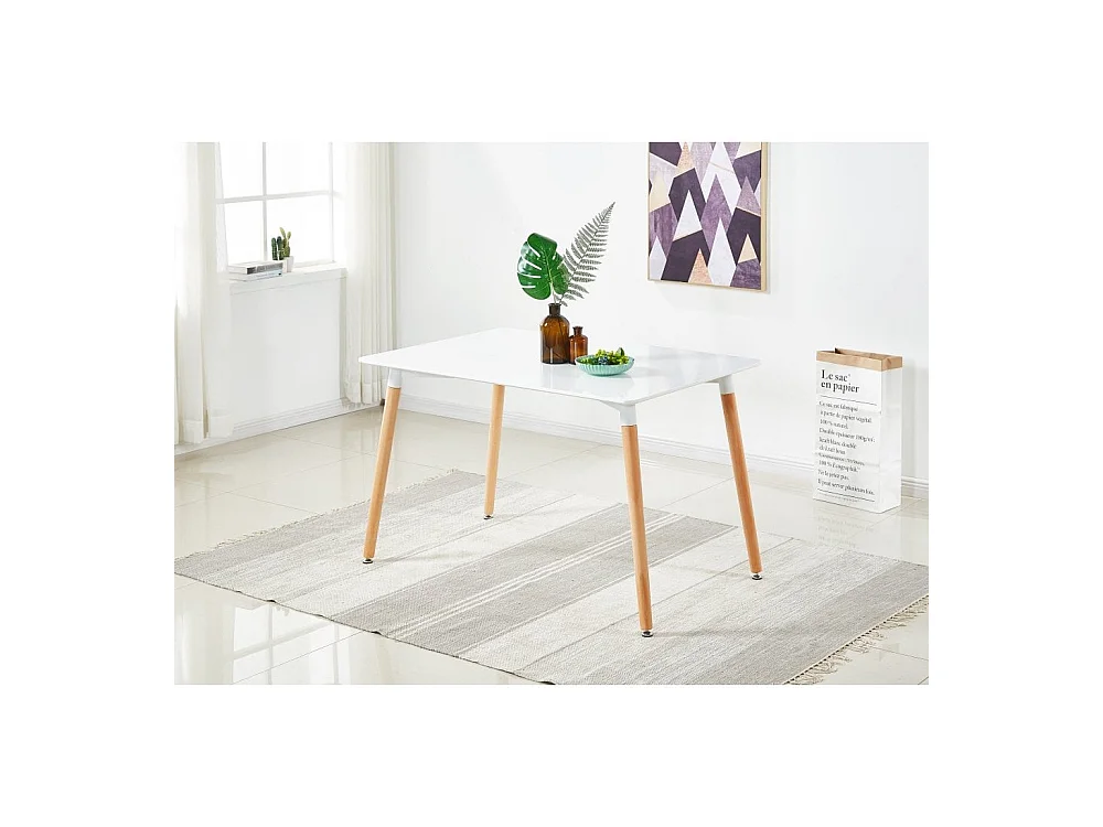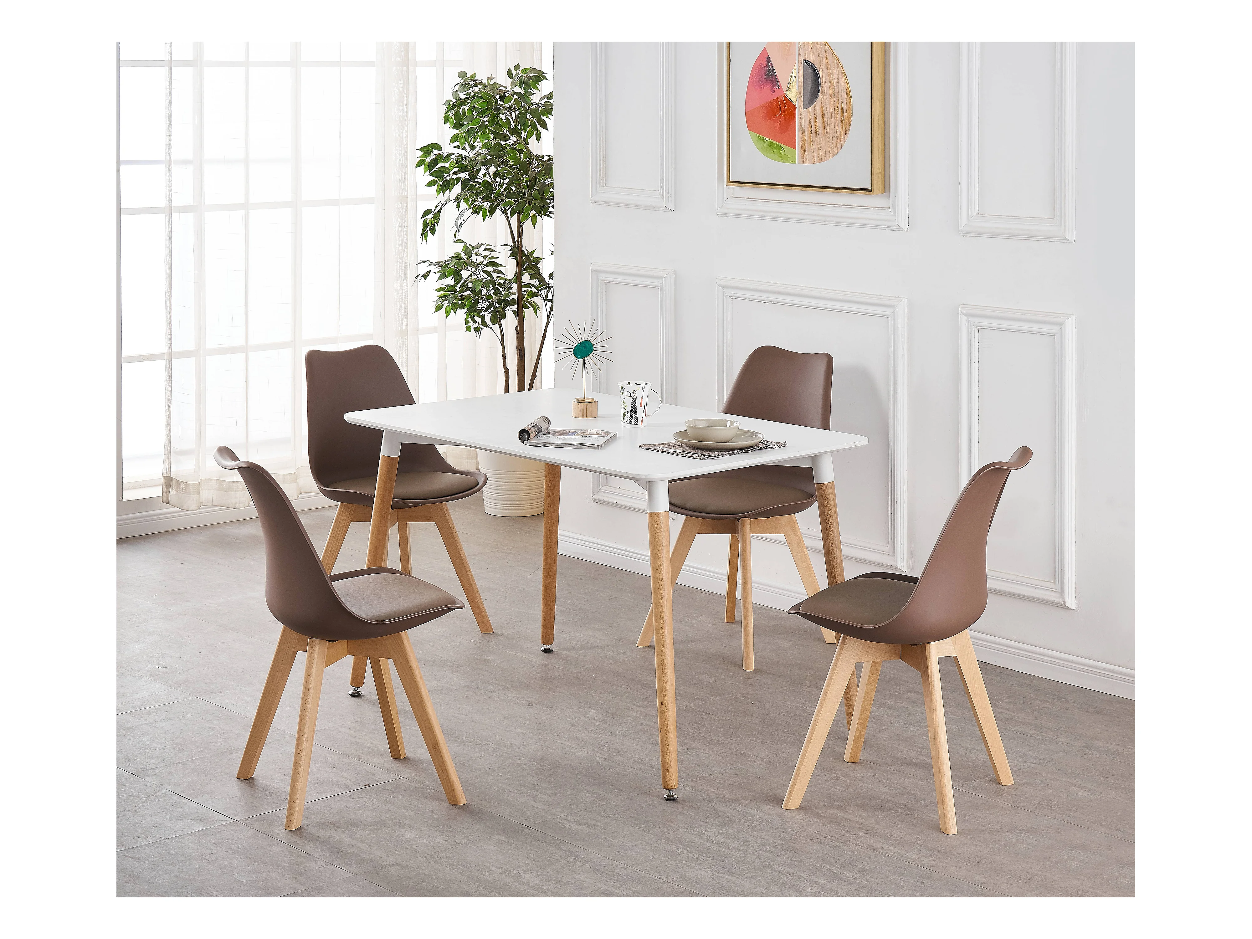 LORENZO HALO - Ensemble Salle à Manger Moderne - Table Blanche + 4 Chaises Marron - Design Scandinave