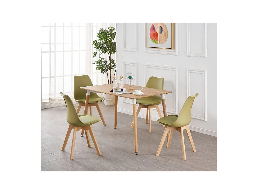 LORENZO HALO - Ensemble Salle à Manger Moderne - Table Effet Chêne + 4 Chaises Vertes - Design Scandinave